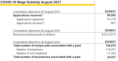 Data for the COVID-19 Wage Subsidy Scheme (August 2021) since applications opened on 20 August 2021: