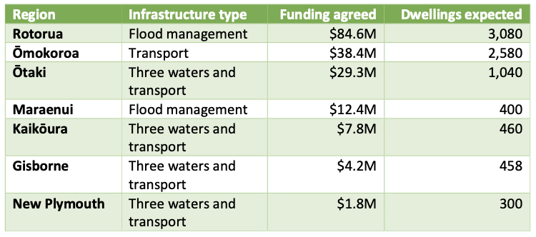 Rotorua, Omokoroa, Kaikoura, Otaki, Napier, Gisborne and New Plymouth will all receive a portion of the Government’s Infrastructure Acceleration Fund.