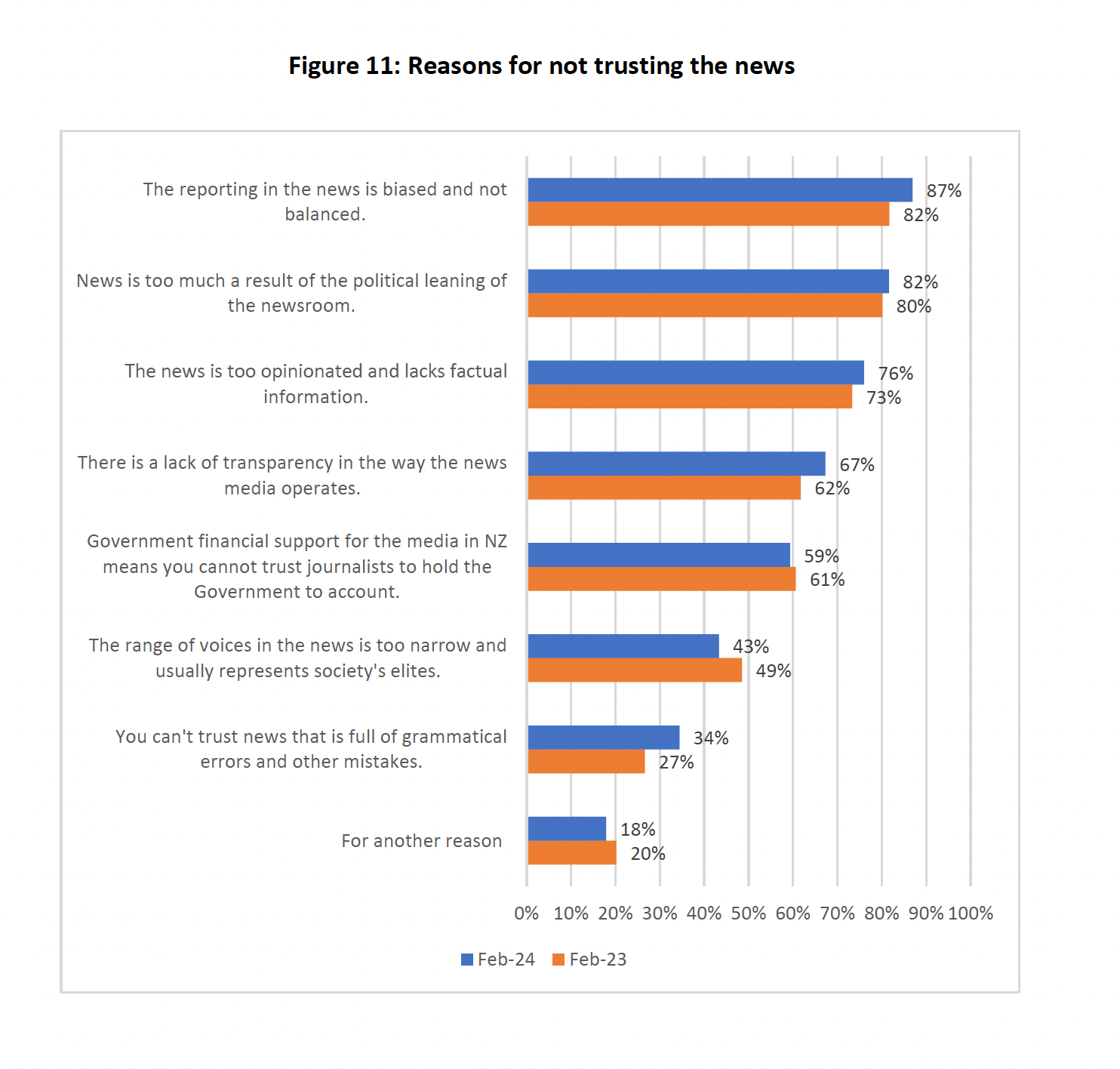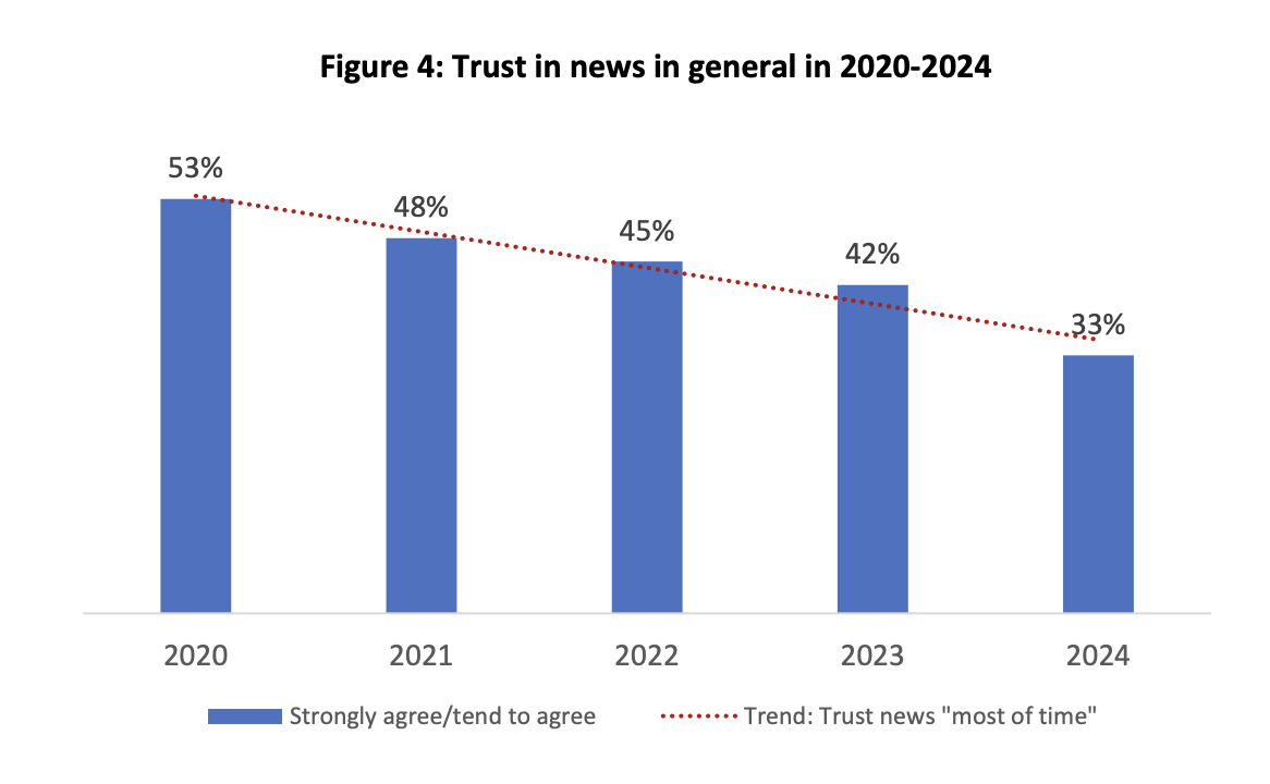 “In 2020, 53% of New Zealanders said they trusted the news in general. In 2024, that figure was at 33%.”
