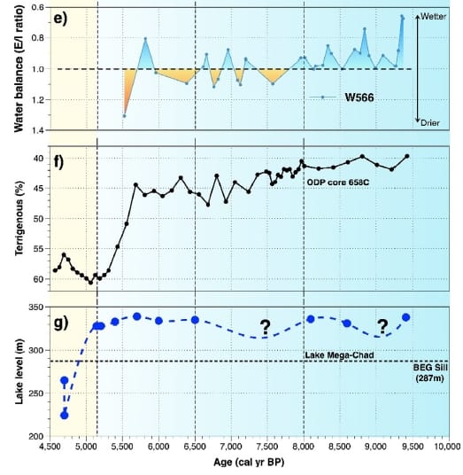 The introduction to Yacoub et al is eye-opening. It is a literature review of scores of papers showing just how wet and green the Sahara was, and then wasn’t – in the blink of a geologic eye. There is still debate about how fast the green era disappeared.