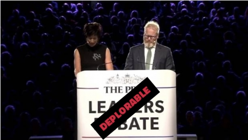 They should hang their heads in shame at the absolute farce they presented to the public. An election debate, of all debates, is where both participants receive the same treatment. This was deliberately not the case in that debate. The whole deplorable circus was staged to favour the clown on the left. For all the favouritism she still couldn’t come up with a trick. Mind you, the audience thought she was a magician judging by the constant rounds of applause she got. I wonder when they last had a face wash because they certainly didn’t recognise her flannel.