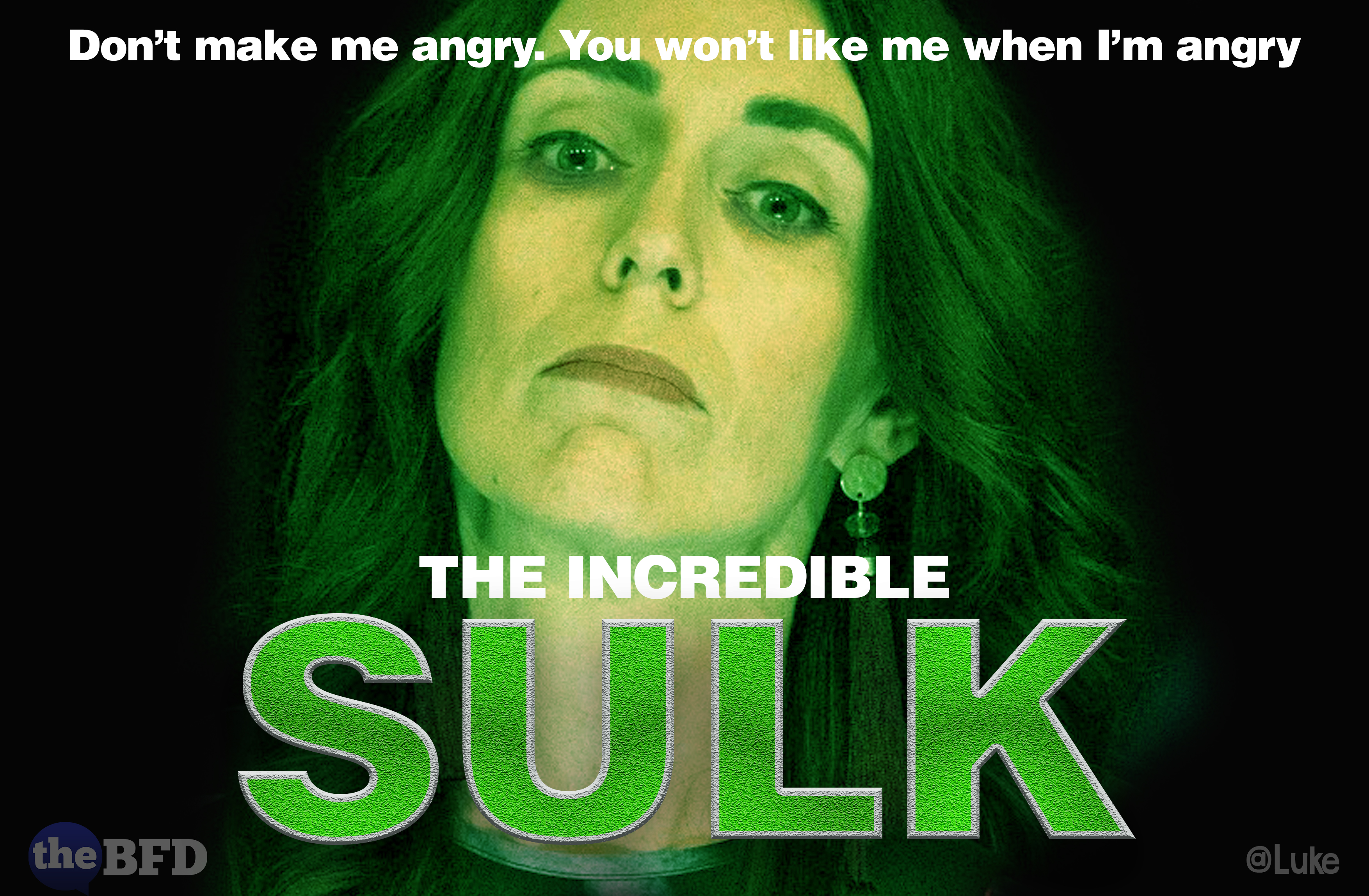 She was soundly spanked and we know she knows that from her body language and the fact that she has proved our meme by becoming the incredible sulk.