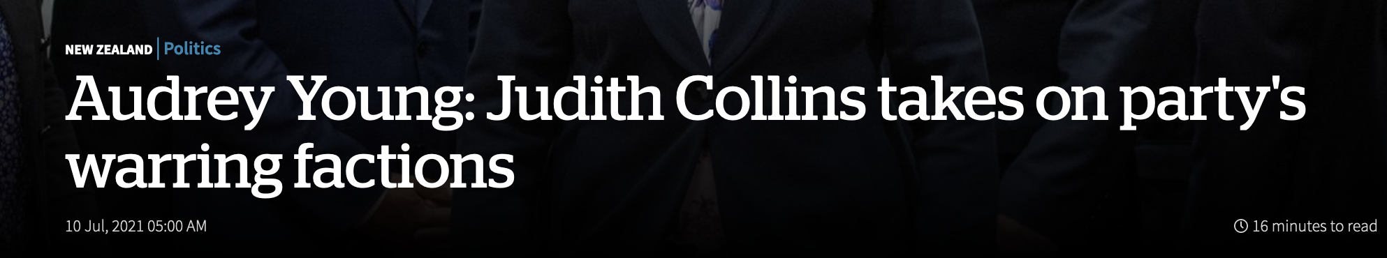 Finally, we get to the nub of the article, that there are no factions, nor support for any pretenders. Judith Collins, by being strong, and vigilant, has united the caucus, even if it took a little bit of fear to be instilled in some of the quivering MPs.