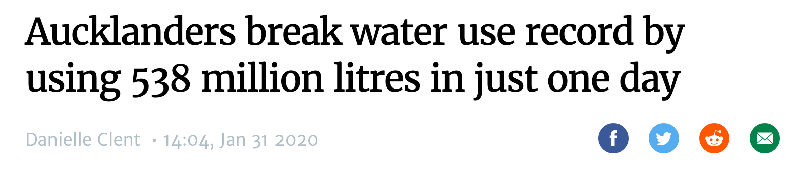 Apparently Auckland, presumably due to climate change as they’ve plonked the story under that category, has used a lot of water.
