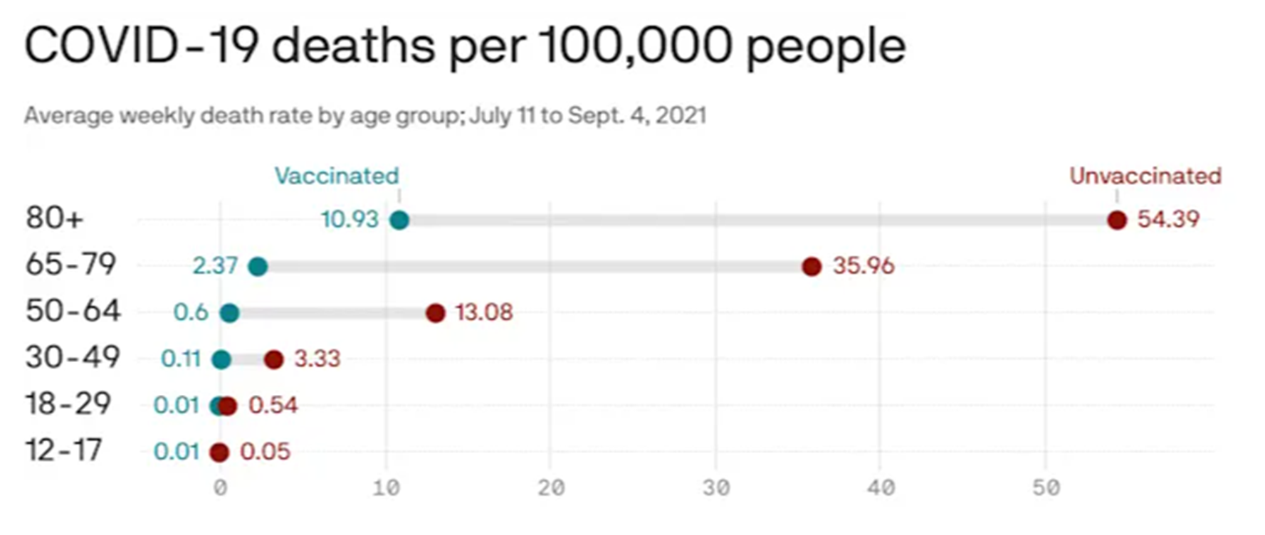 After I briefly showed the following graph (derived from CDC data) to illustrate the low level of risk from Covid-19 for most people – particularly for the young, one member complained that “these are just numbers”. Unfortunately, the attendees were baying so loudly for my presentation to be shut down (only a minute or two in at that point) that I could not even ask that person what they meant by that strange comment, let alone respond to it.