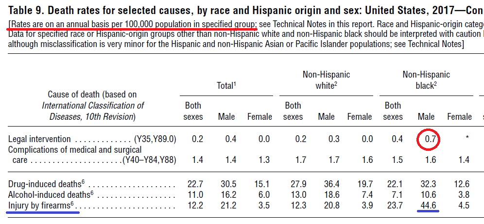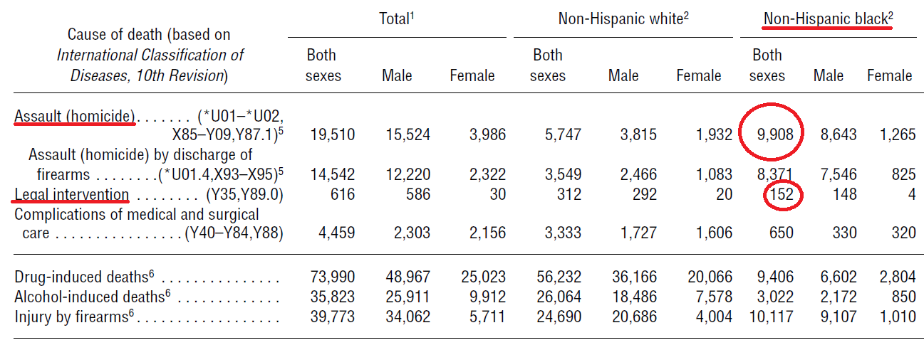 As for Stuff’s race-baiting headline; well that is a very, very, obvious lie. The facts are that, despite homicides being an all-too-common occurrence amongst some particular black enterprise-cohort’s and neighbourhoods, all black deaths by all-cause homicide together as a grouping don’t even make it into the ‘leading’, or most common, causes of black’s demise. It’s not in the ‘top’ fifteen, while death at the hands of law-enforcement officers rates as an infinitesimally small factor.