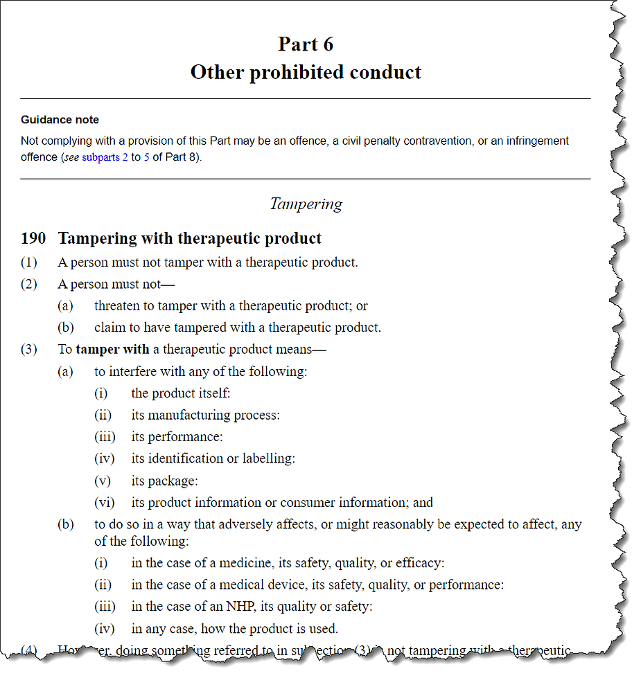 Section 190 deals with the act of tampering with therapeutic products. While this may seem like a reasonable provision to protect consumers from dangerous alterations to products, the concern arises when one considers how broadly this section could be interpreted. Could public comments or discussions about the efficacy of a product be considered tampering, even if there is no physical alteration of the product itself?