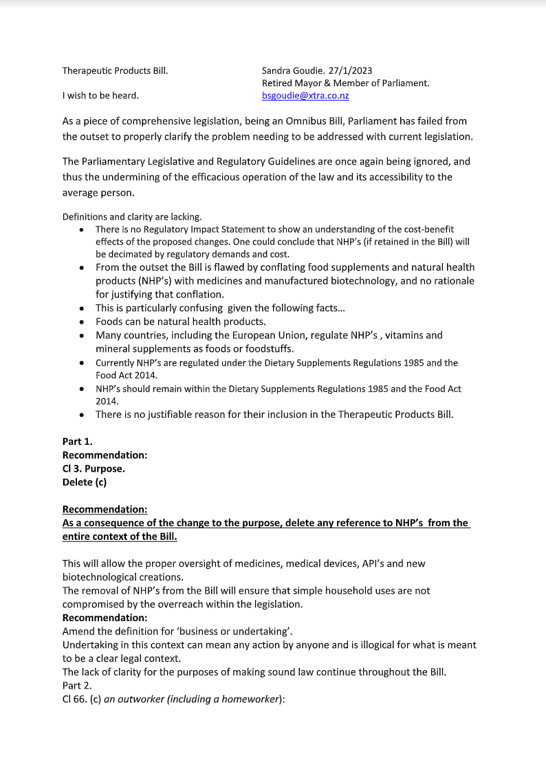 Quoted from the submission about the TPA by Sandra Goudie (27/1/2023)