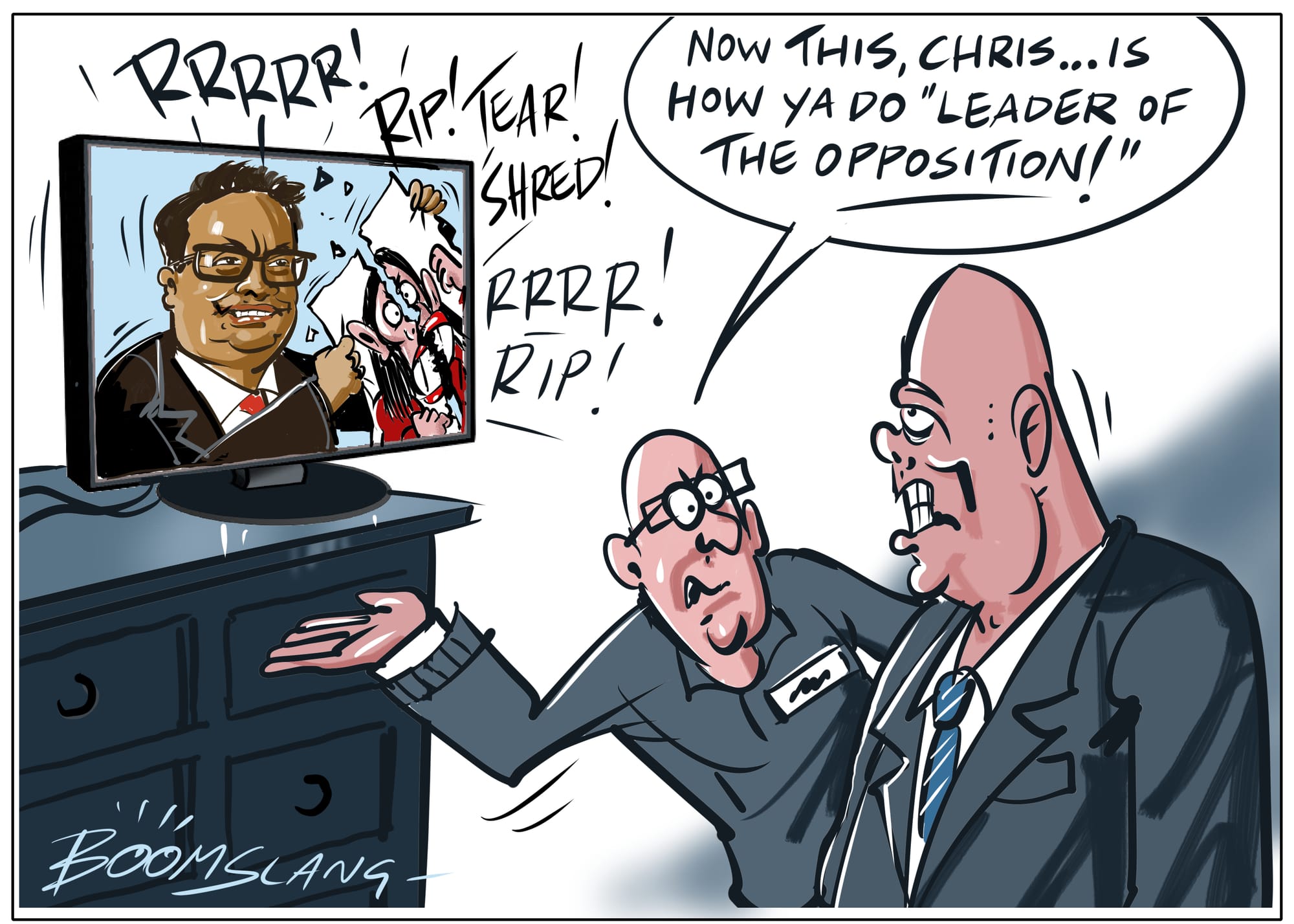 Opposition coaching. Cartoon credit: Boomslang The BFD.