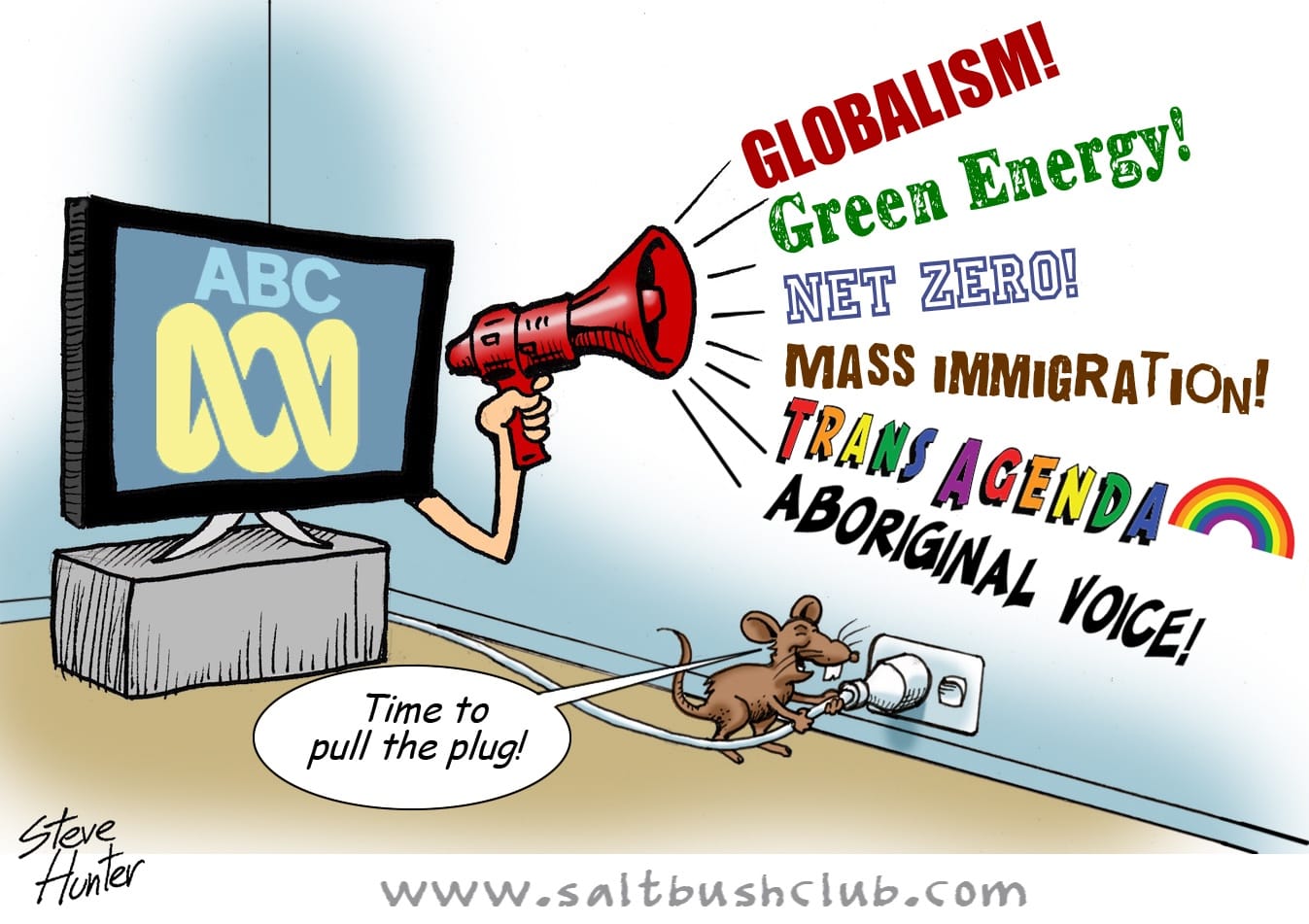 But their ABC opposes our backbone industries and promotes the globalist agenda for expensive intermittent “green” electricity plus more electric vehicles. More demand for electricity, with intermittent and unreliable supply, means that blackouts are inevitable.