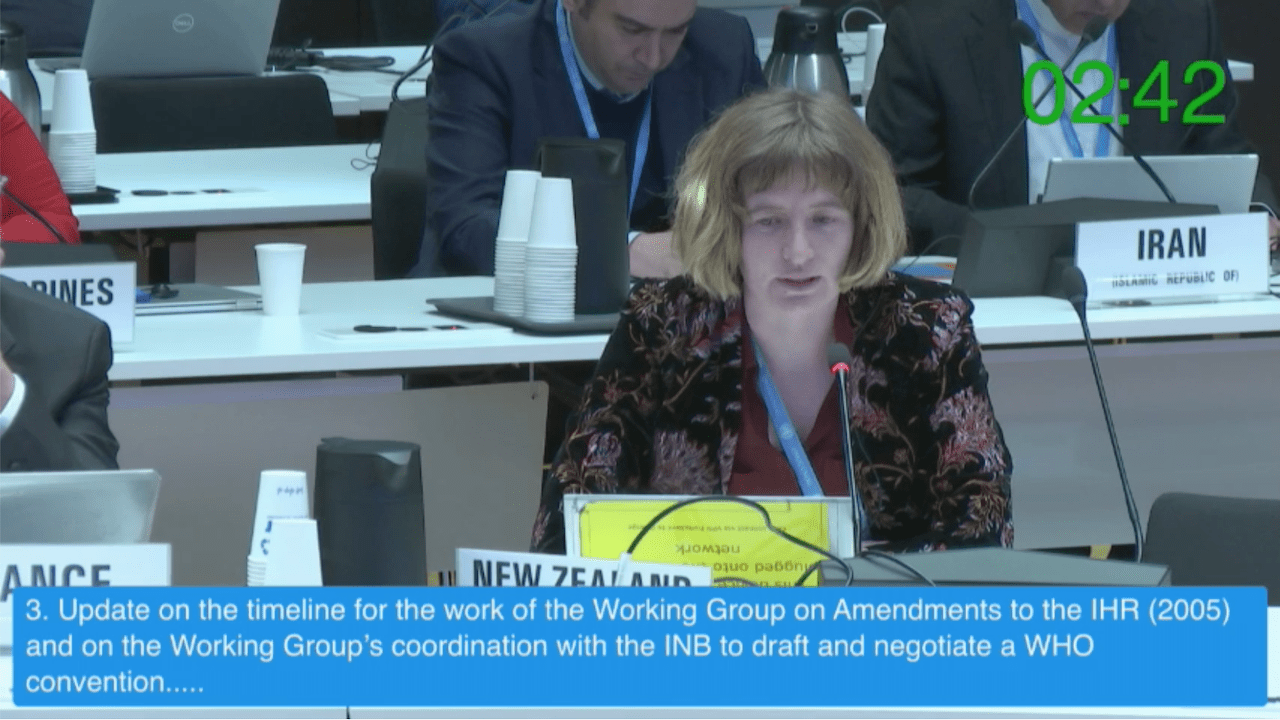 We are yet to learn who is representing New Zealand on the International Negotiating Body (INB) of the WHO CA+, which operates largely in secret: a red flag in itself. This screenshot of our representative was taken from the Fourth Meeting of the INB in Geneva in March 2023.