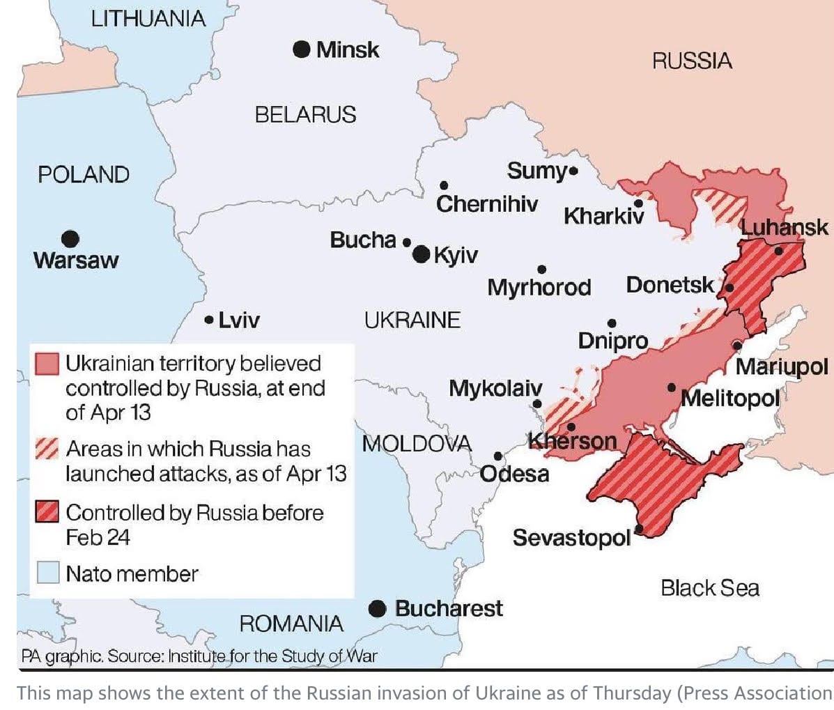 Meanwhile, Easter brought no bunnies, only bombs for Severodonetsk in eastern Ukraine where five died as Russia mounted its campaign in the South East. According to a post on Telegram, the town of Kreminna in eastern Luhansk fell to the Russians.