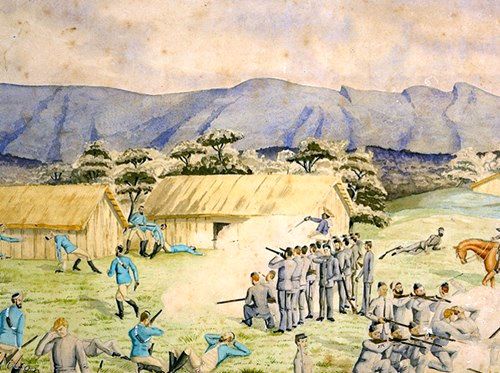 General Cameron outflanked the kingites’ heavy defences and the Government forces moved on to capture the food supplies of the garrison, the fields of wheat, maize and potatoes, and peach groves at Rangiaowhia.