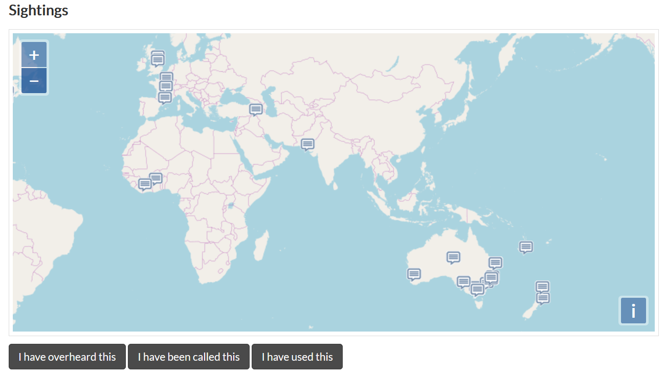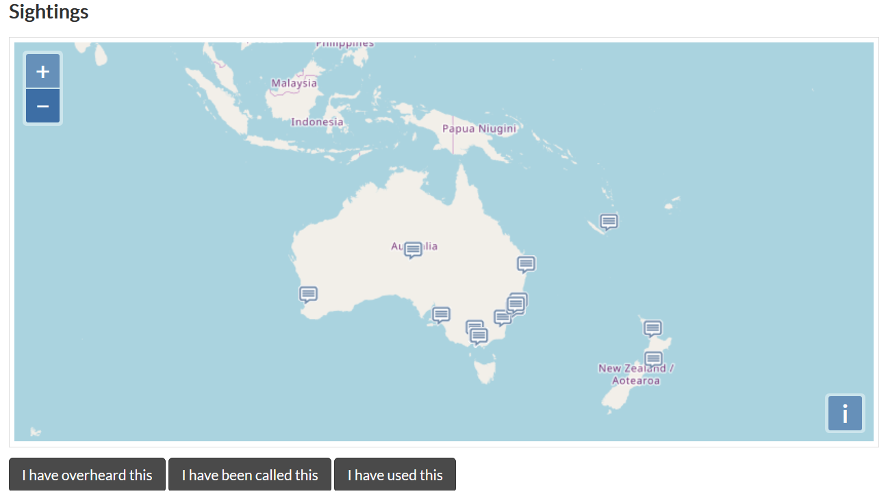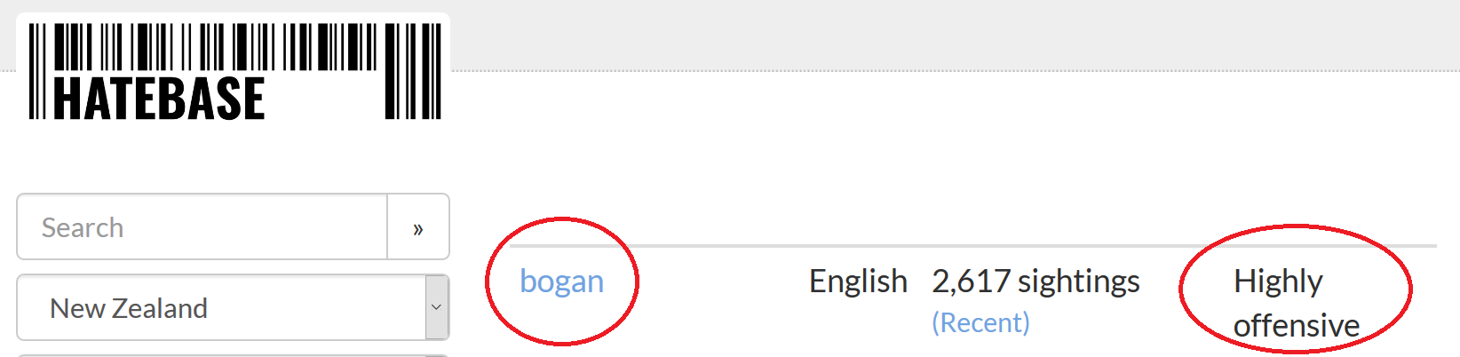 They even have a map of reported ‘sightings’, but perhaps they mean ‘citings’, of the foul b_g_n slur (I hereafter and forevermore refuse to repeat the word, despite the fact it’s what my children call me; I must chastise them) which unsurprisingly locates examples of the b-word occurring in both Waitakere and Blenheim, but, shamefully, it appears to have also spread to Alice Springs and New Caledonia…