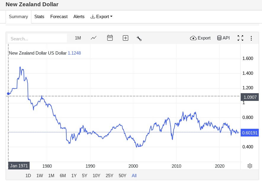 Prior to that, as the graph shows, New Zealanders were buying things with a dollar that was quite valuable – more valuable than a US dollar. This is why our living standard was high; this is why when you were a younger man you seemed more prosperous than today. Then, in a moment of drunken madness, New Zealanders elected the Kirk government. They promptly set about punishing the population for keeping them in opposition for decades, and did so without hesitation or restraint.
