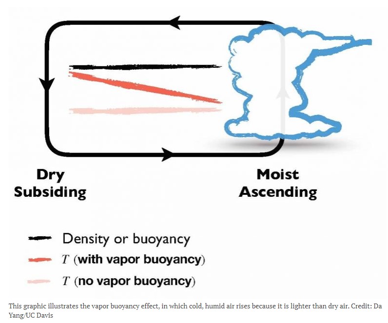 In a study published on May 6, 2020 in the journal Science Advances, the authors show the profound implications water vapour buoyancy has on Earth’s climate and energy balance and that this effect helps to stabilize tropical climates and buffer some of the impacts of a warming climate.