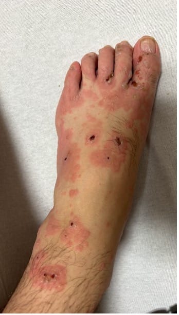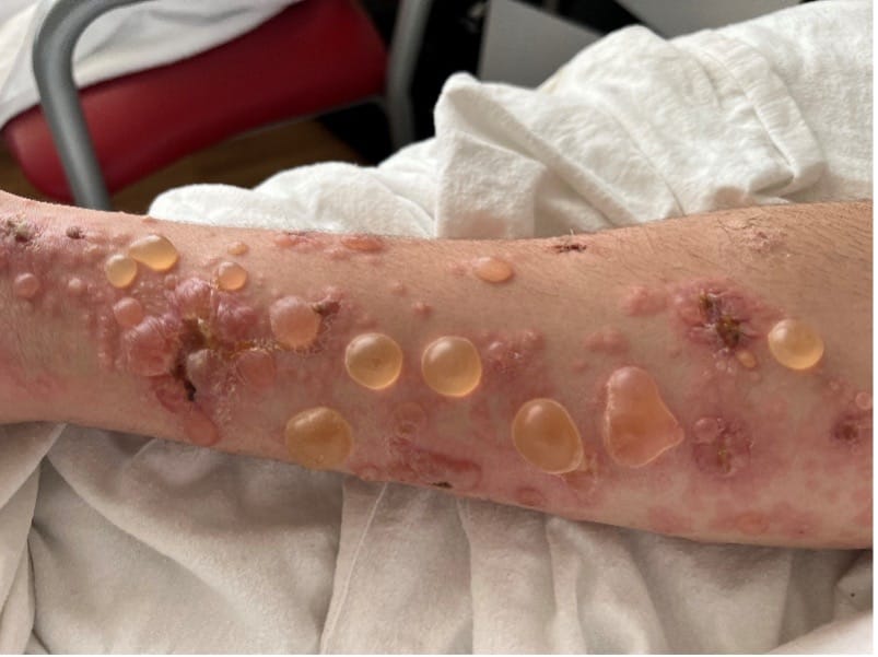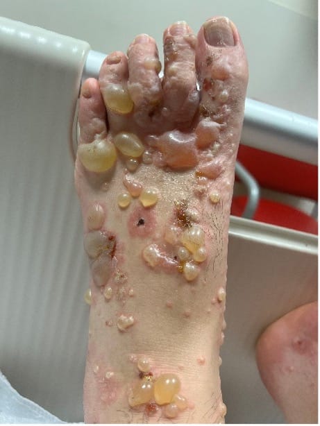 Still receiving no answers, and while my son remained in the hospital, I shared photos of his outbreak with a close friend who had contacts with health professionals in the United States. Within twenty-four hours we received notification that ‘this exact outbreak’ called bullous pemphigoid, was being seen a lot in young people in America following the administration of the Pfizer vaccine.
