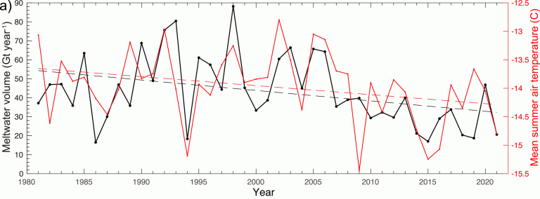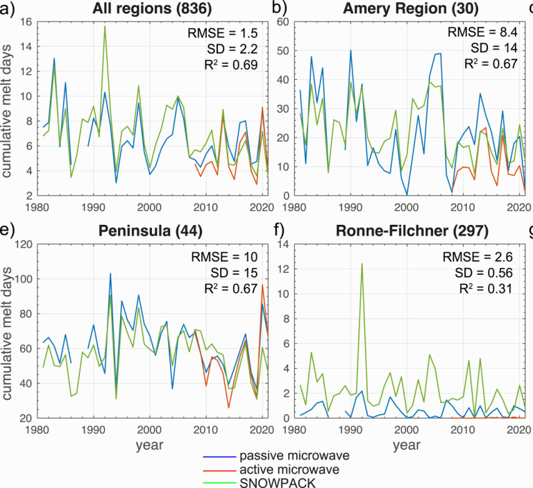 Alison F Banwell et al, Quantifying Antarctic-Wide Ice-Shelf Surface Melt Volume Using Microwave and Firn Model Data: 1980 to 2021, Geophysical Research Letters (2023). DOI: 10.1029/2023GL102744
