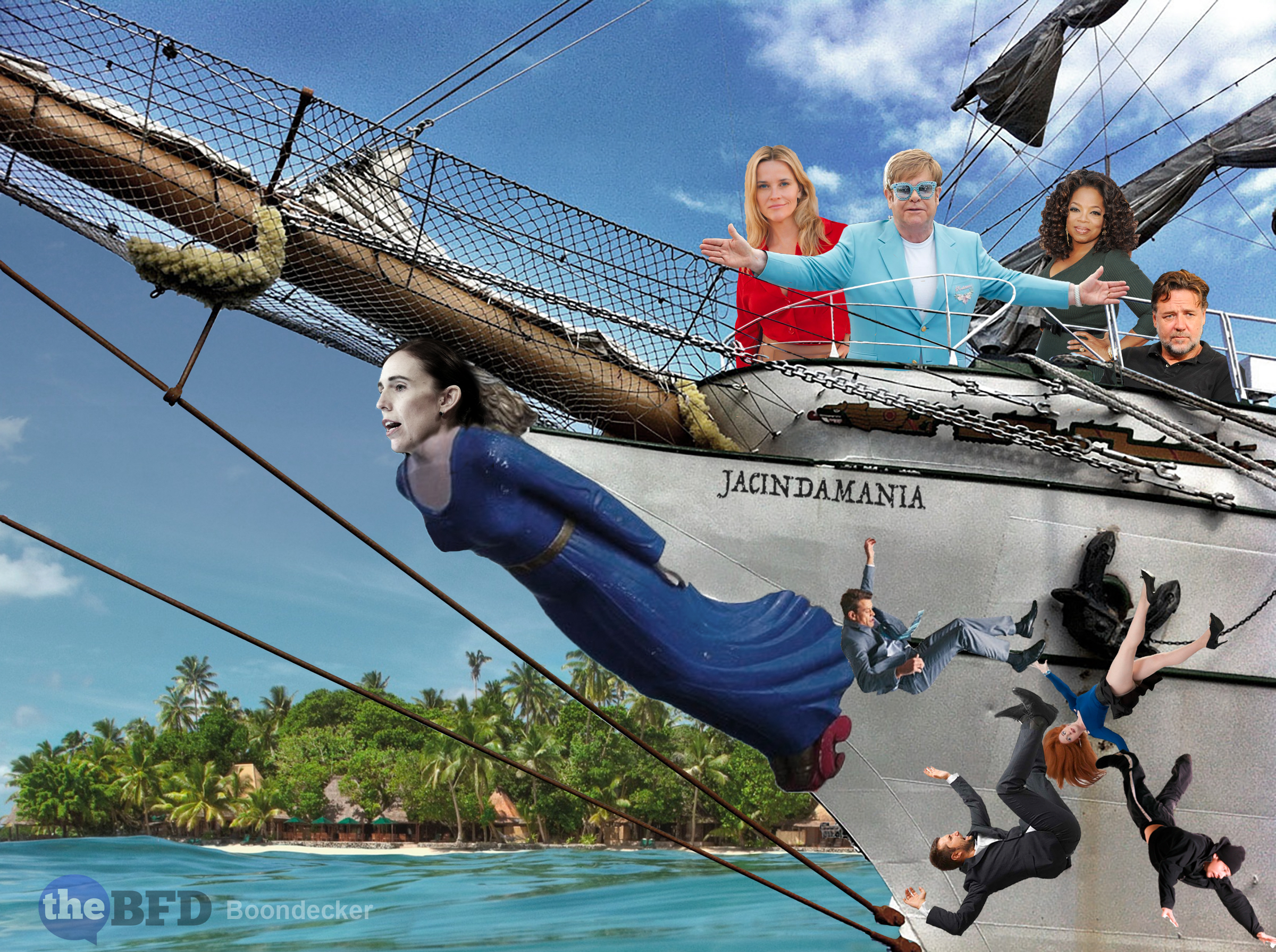 Naturally, Hollywood celebrities are not usually up to running a country, but neither is our celebrity PTPM. Non-delivery on promises and failure to perform eventually bites her at the polls. Diehard Labour voters will never abandon their princess, but there is only so much neglect even the most disinterested voter can stomach. The decline in Ardern’s popularity began last month when she took a tumble in the polls, dropping over nine points in the Newshub-Reid Research Poll. Note in Boondecker’s photoshop ‘Ship of Fools’ – shrunken ex punters awkwardly disembarking “let me out of here, anyway, anyhow!”