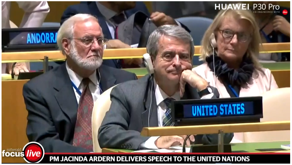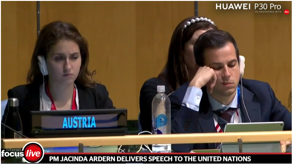 Even the NZ delegation looked bored and disengaged. And why does a Kiwi need a translation earpiece? Posidividy > positivity, perhaps?