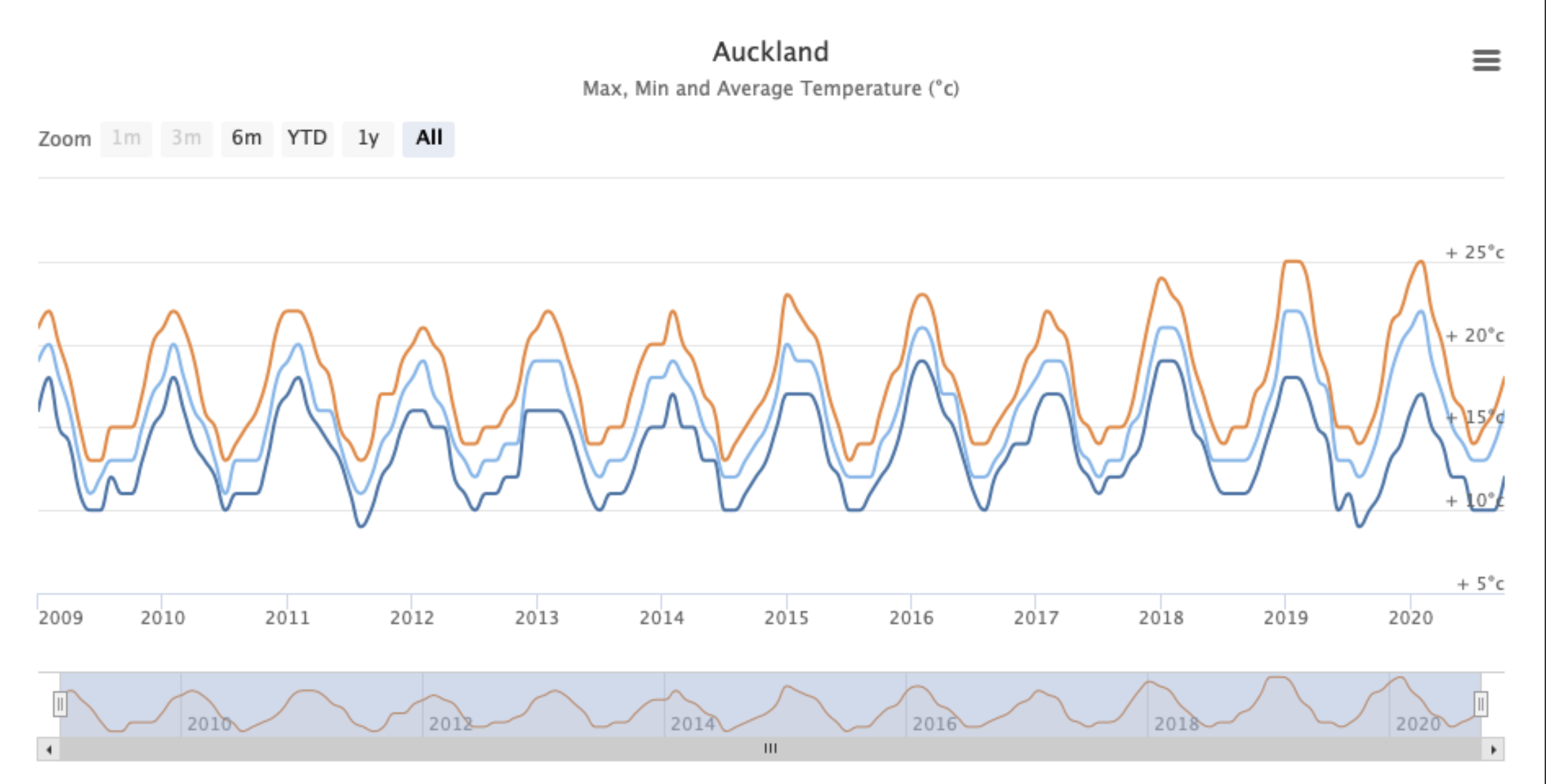 In fact, look at this graph of Auckland temperature movements for the past 11 years: