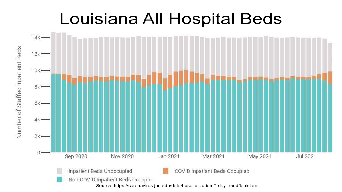 So the real situation seems to be that a regional cluster has hit two hospitals especially hard. But Louisiana still has another 260 hospitals with over 400 ICU beds open, to take patients.