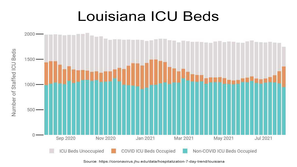 Louisiana hospitals are running out of ICU beds as COVID-19 cases surge in the state.