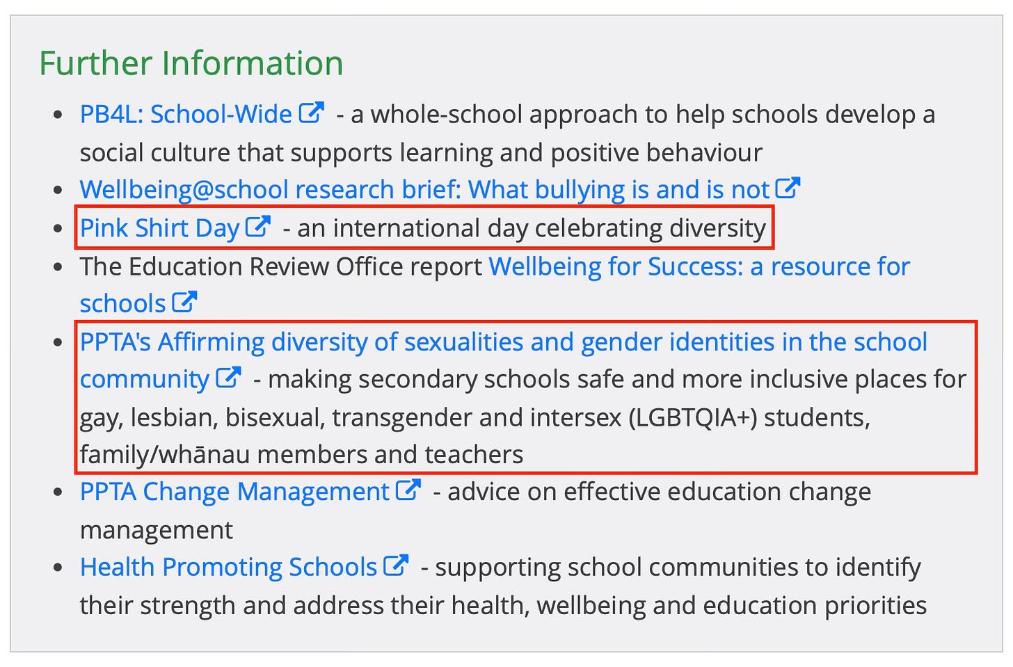 - At the same time, Pink Shirt Day is promoted to schools each year as a way to address bullying, and ‘health’ lessons are conducted that normalise ‘gender identity’ and ‘gender non‑conformity’ as central issues.