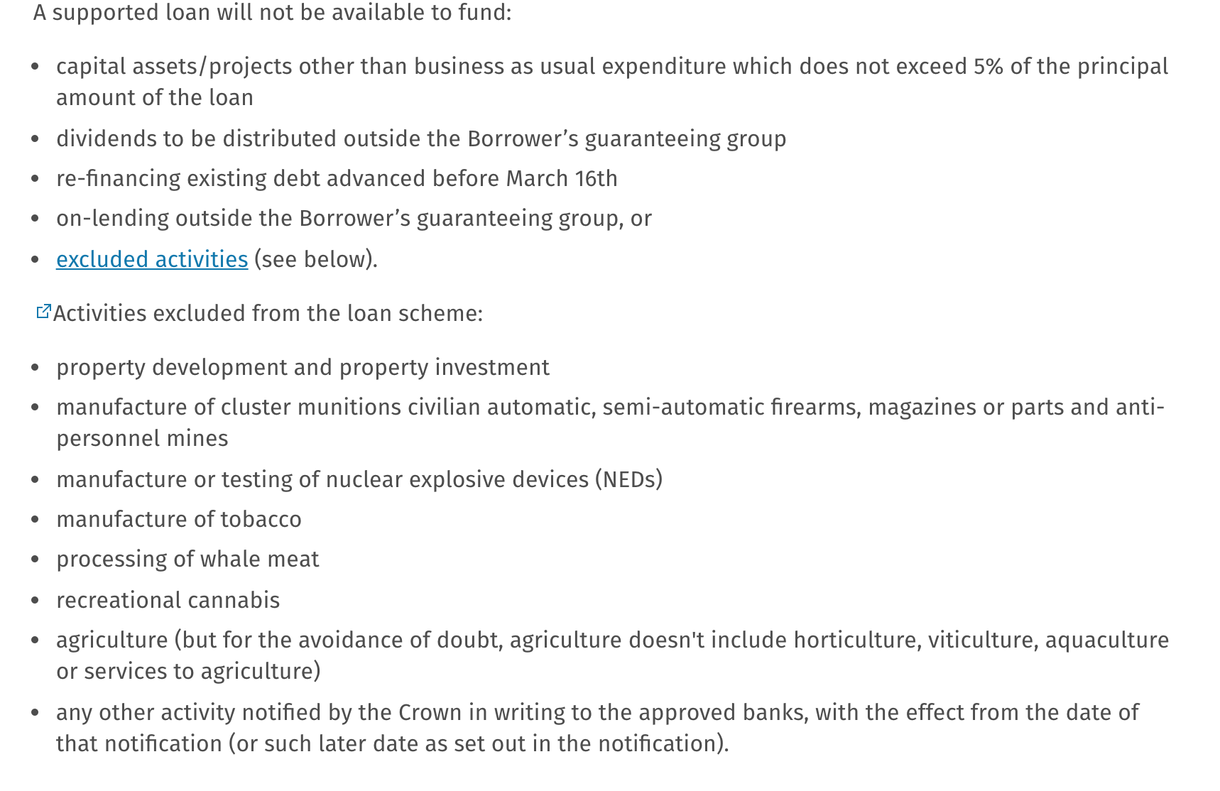 I noted these items near the top of the list of “Activities excluded from the loan scheme” *