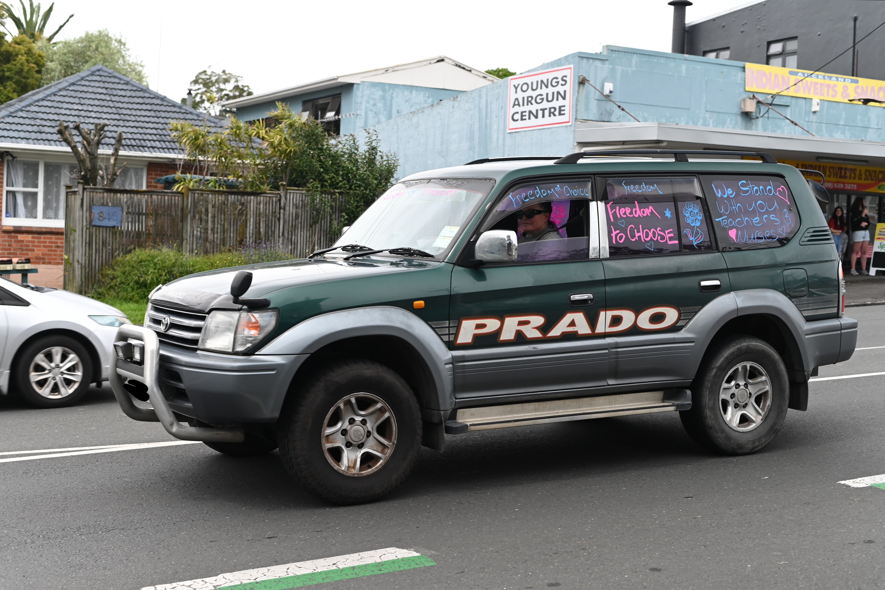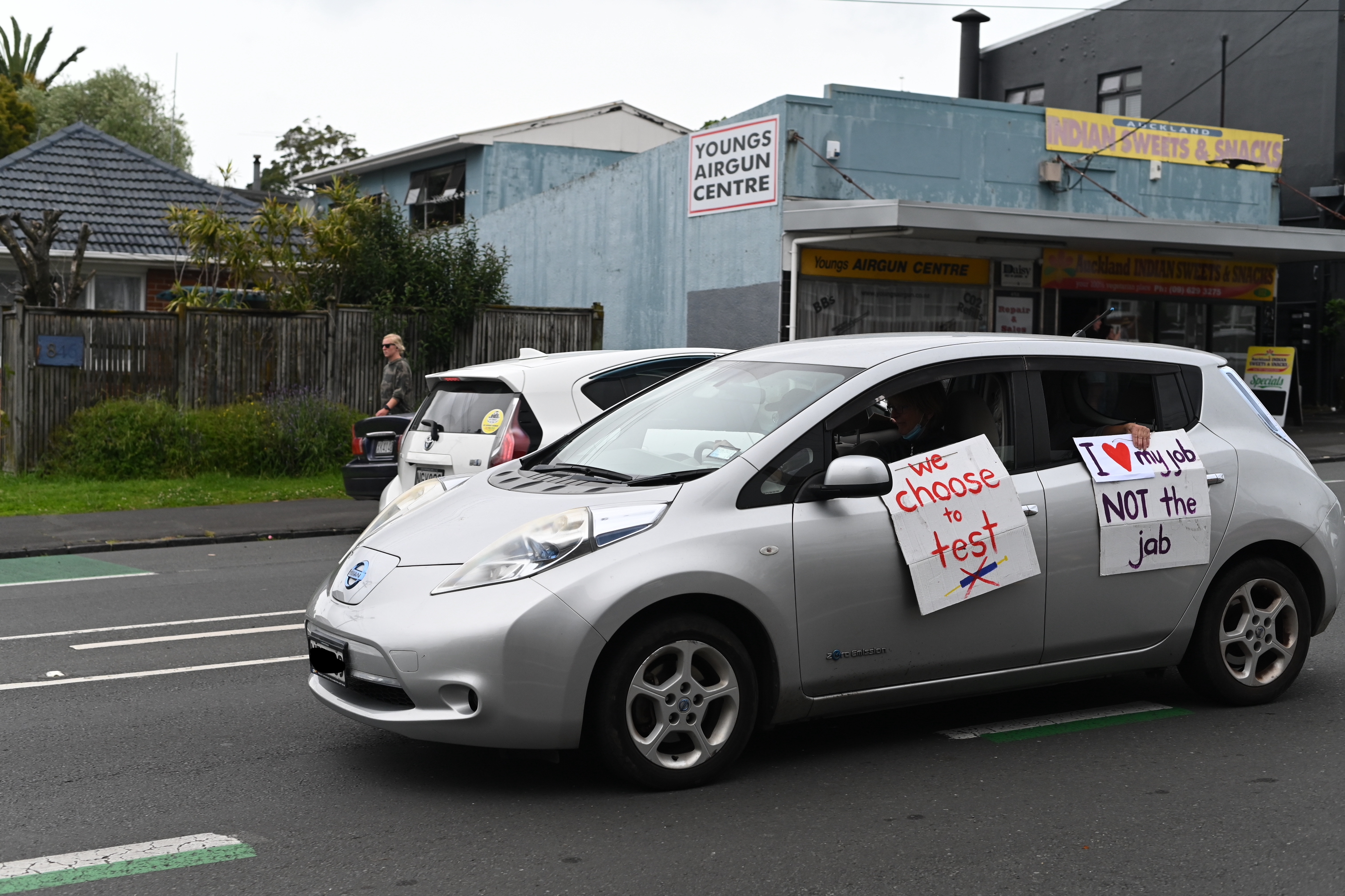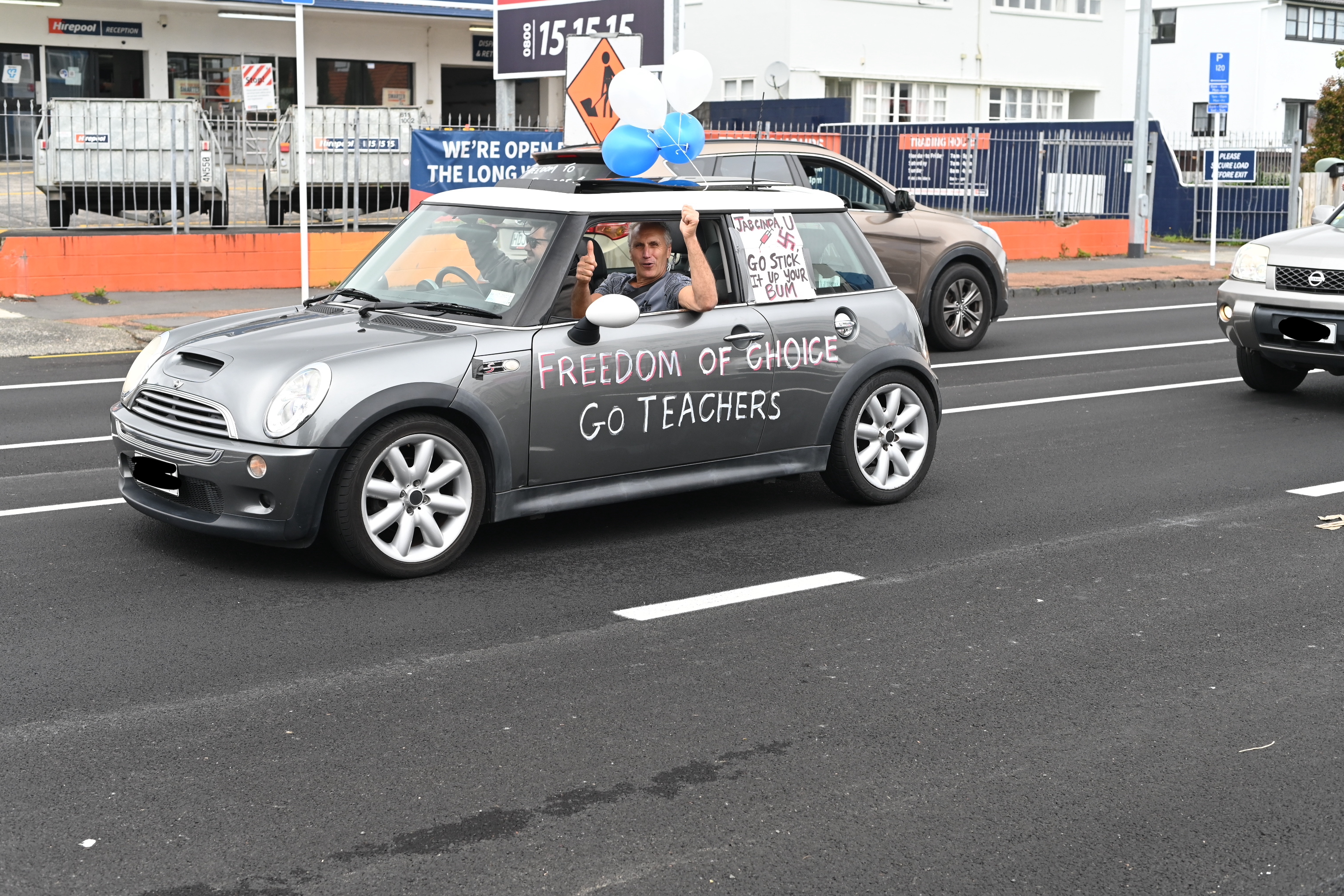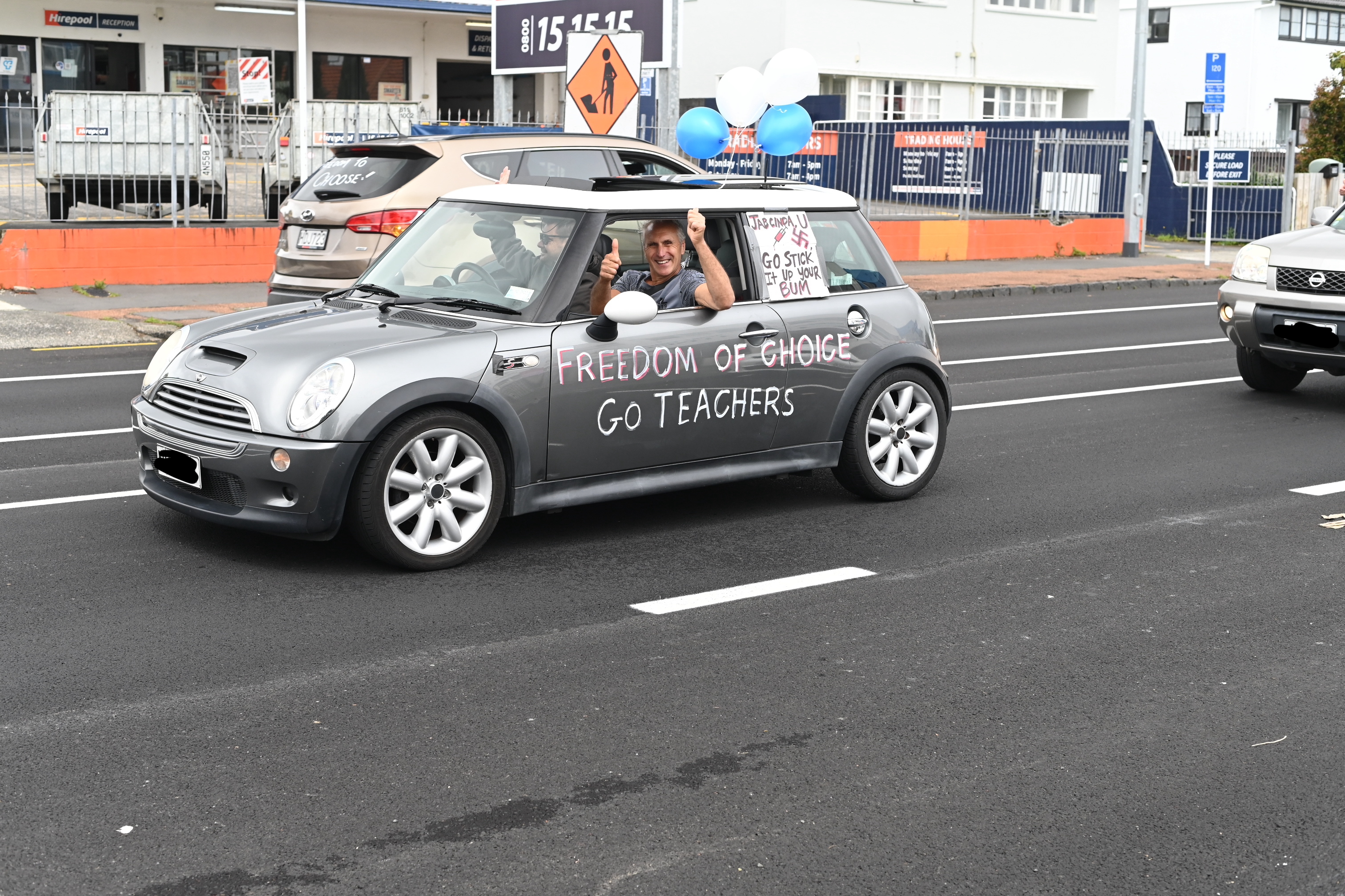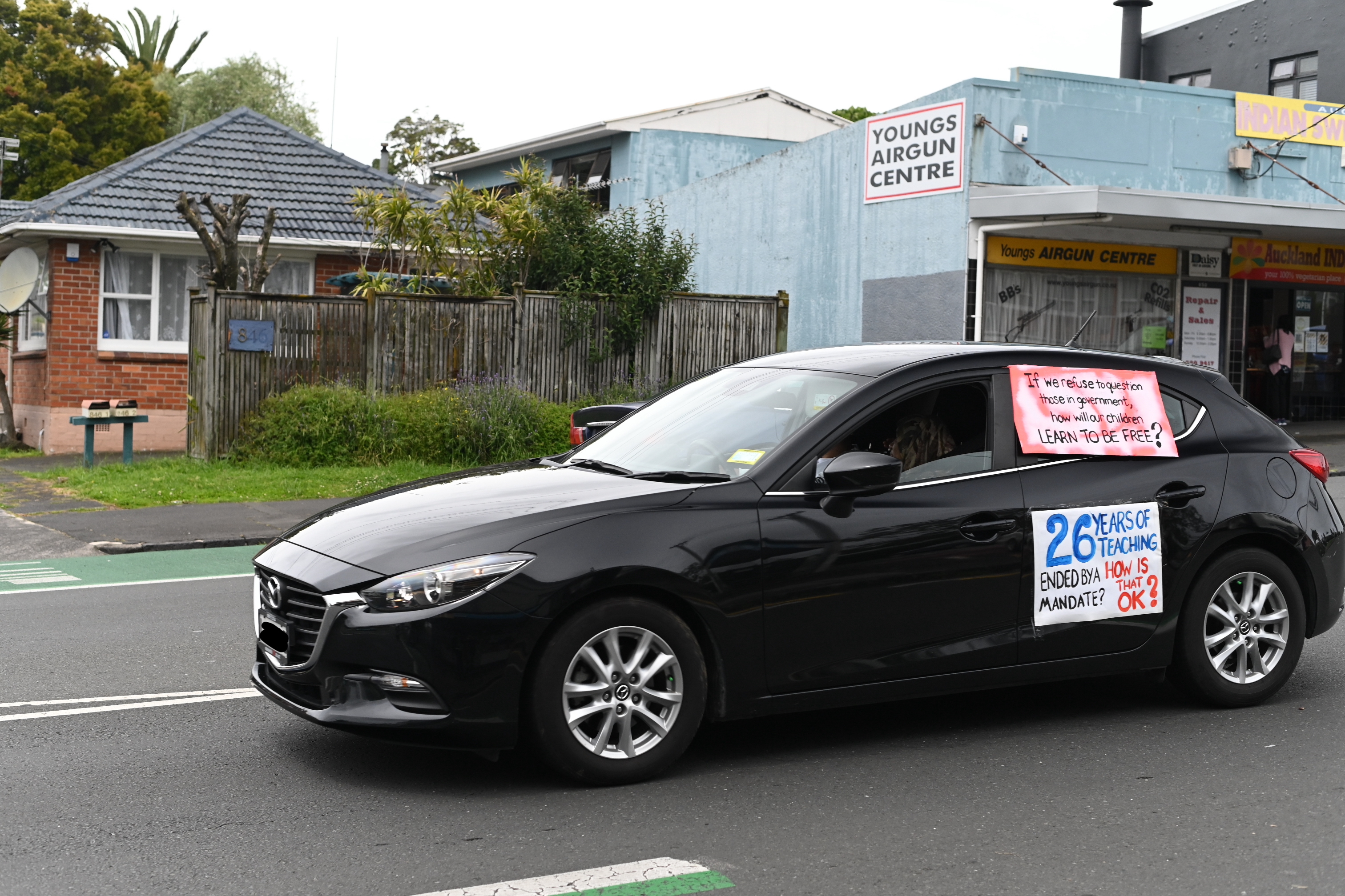 Protest action is mounting over the Government’s vaccine mandates. Teachers and Healthcare workers took to Auckland’s streets to show their displeasure. The BFD had a roving reporter capturing many of the protestors’ cars as they drove past.