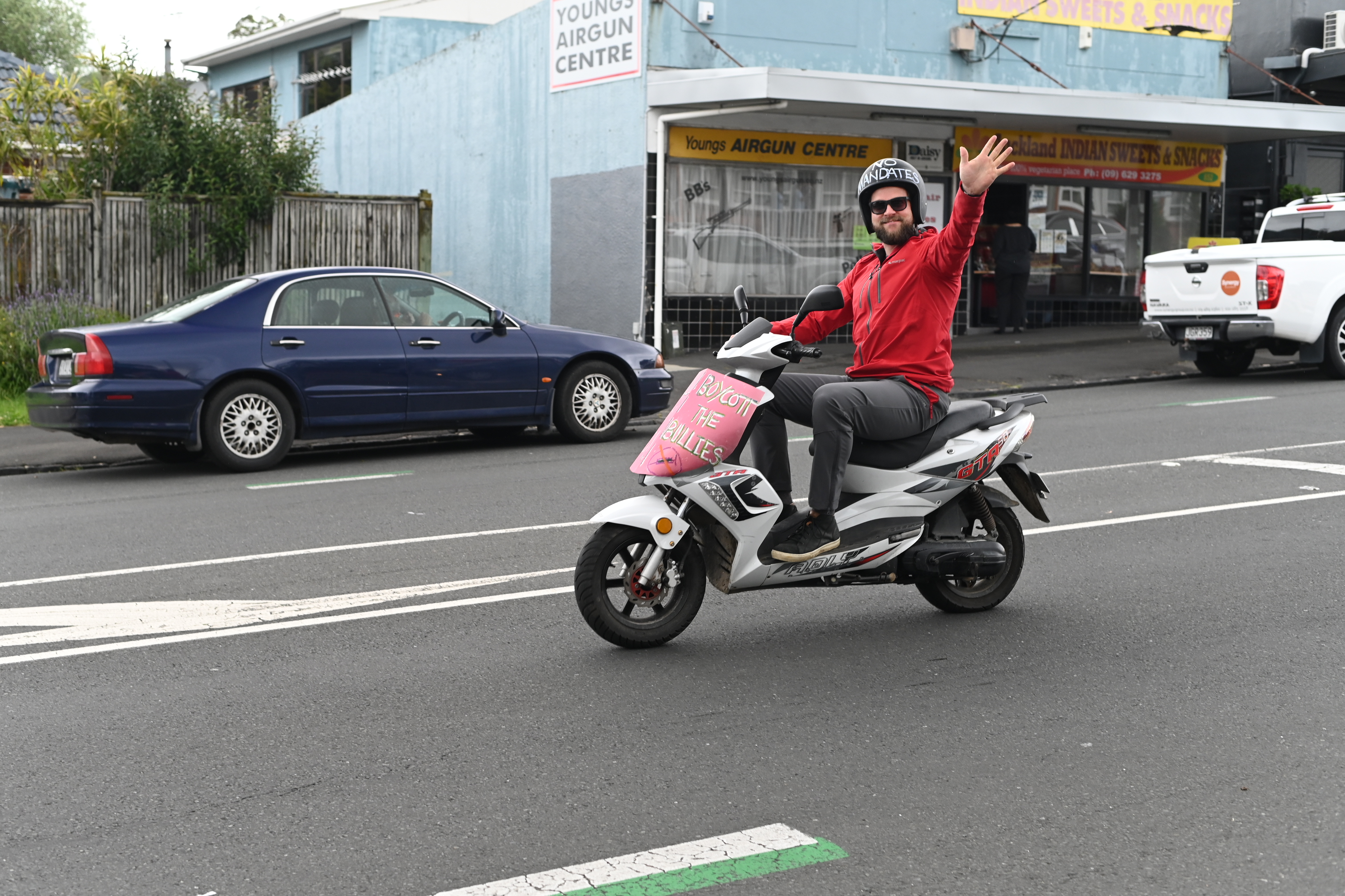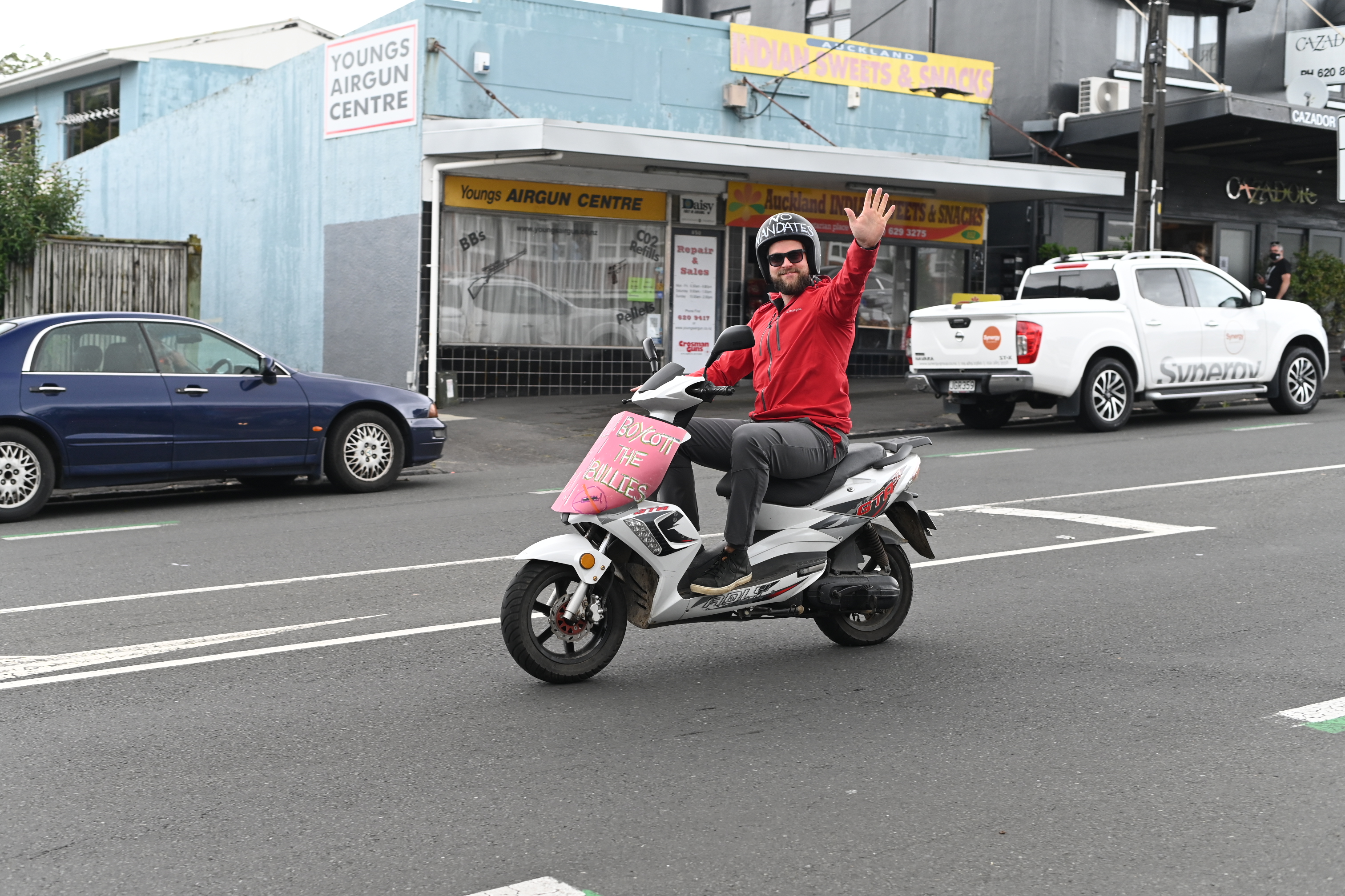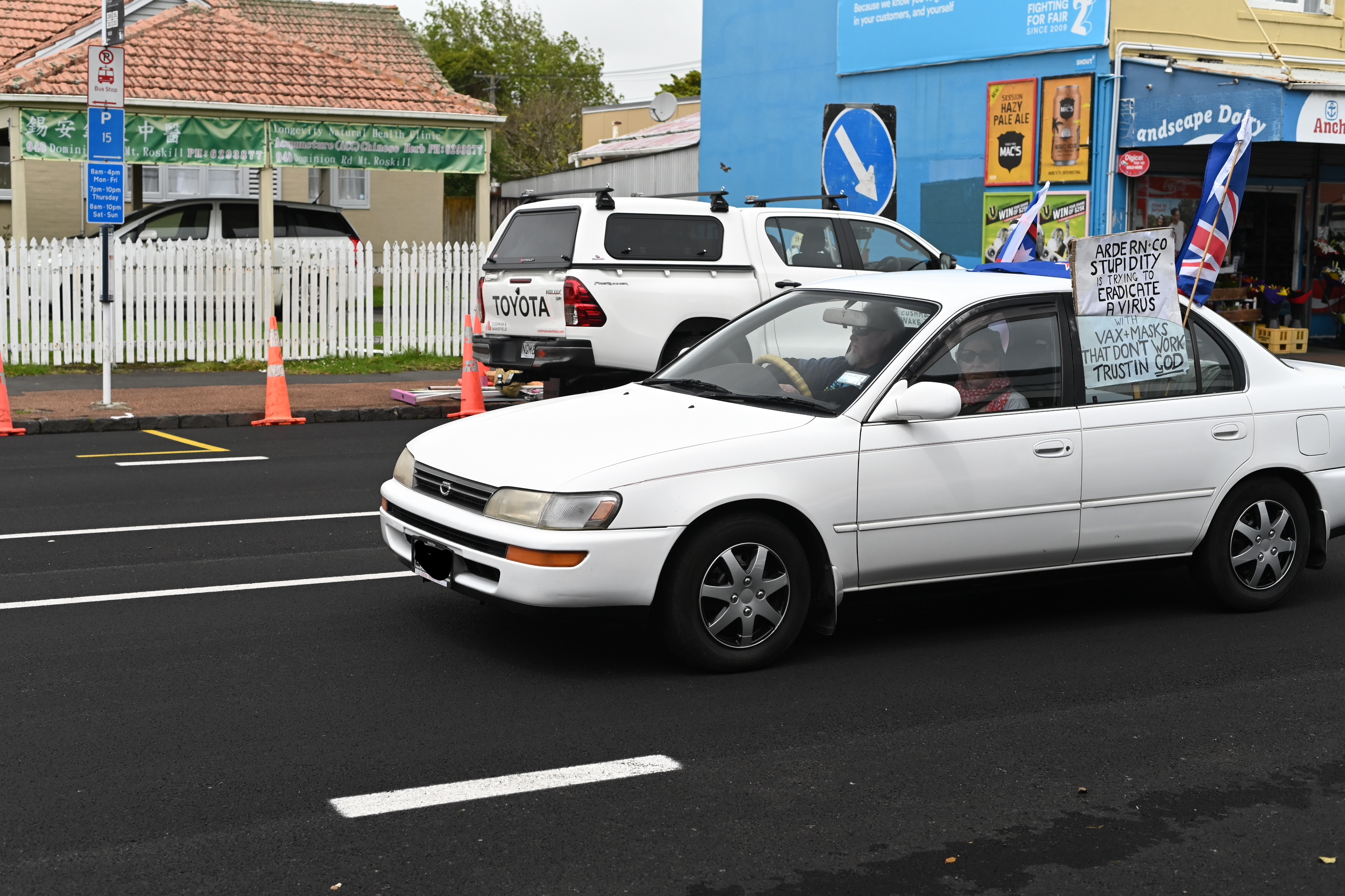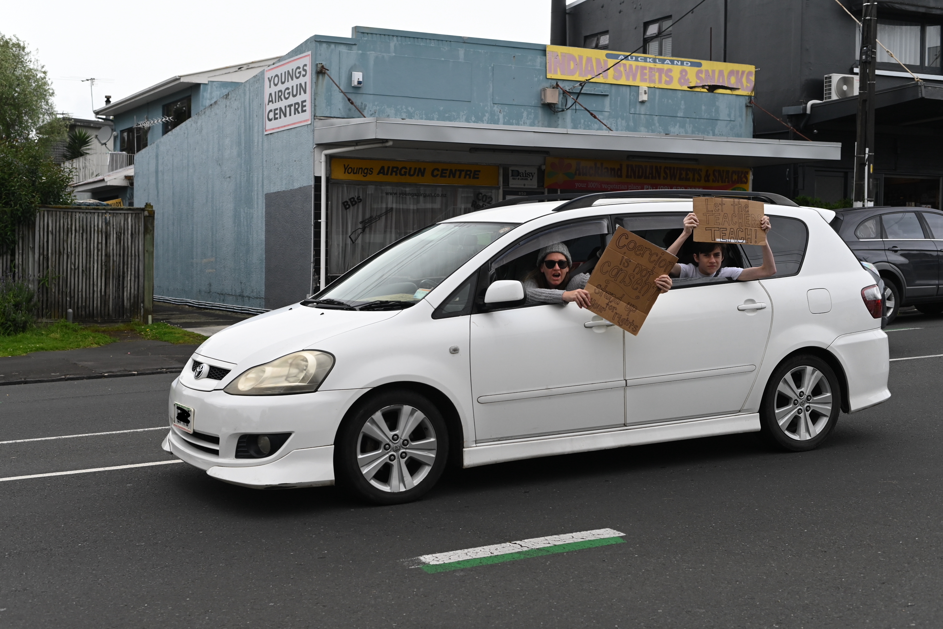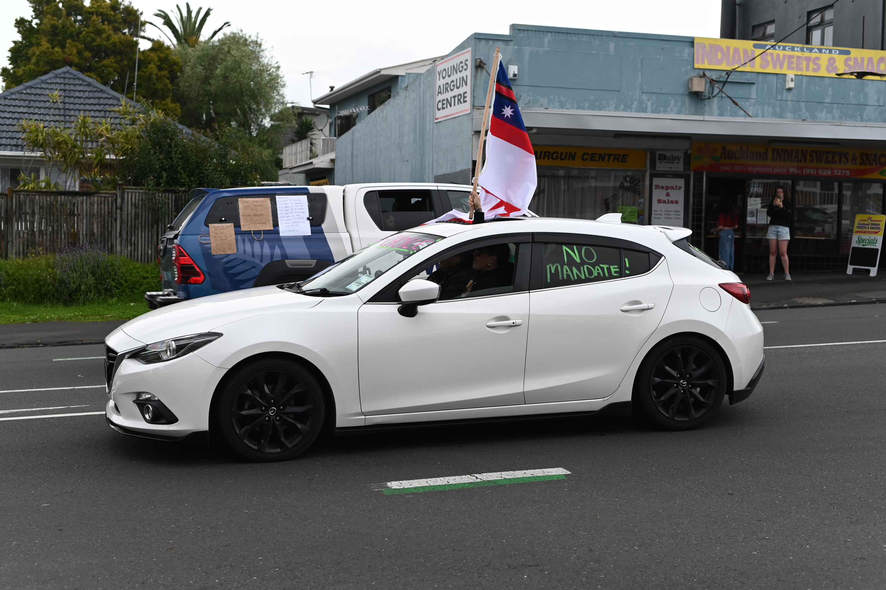 Protest action is mounting over the Government’s vaccine mandates. Teachers and Healthcare workers took to Auckland’s streets to show their displeasure. The BFD had a roving reporter capturing many of the protestors’ cars as they drove past.