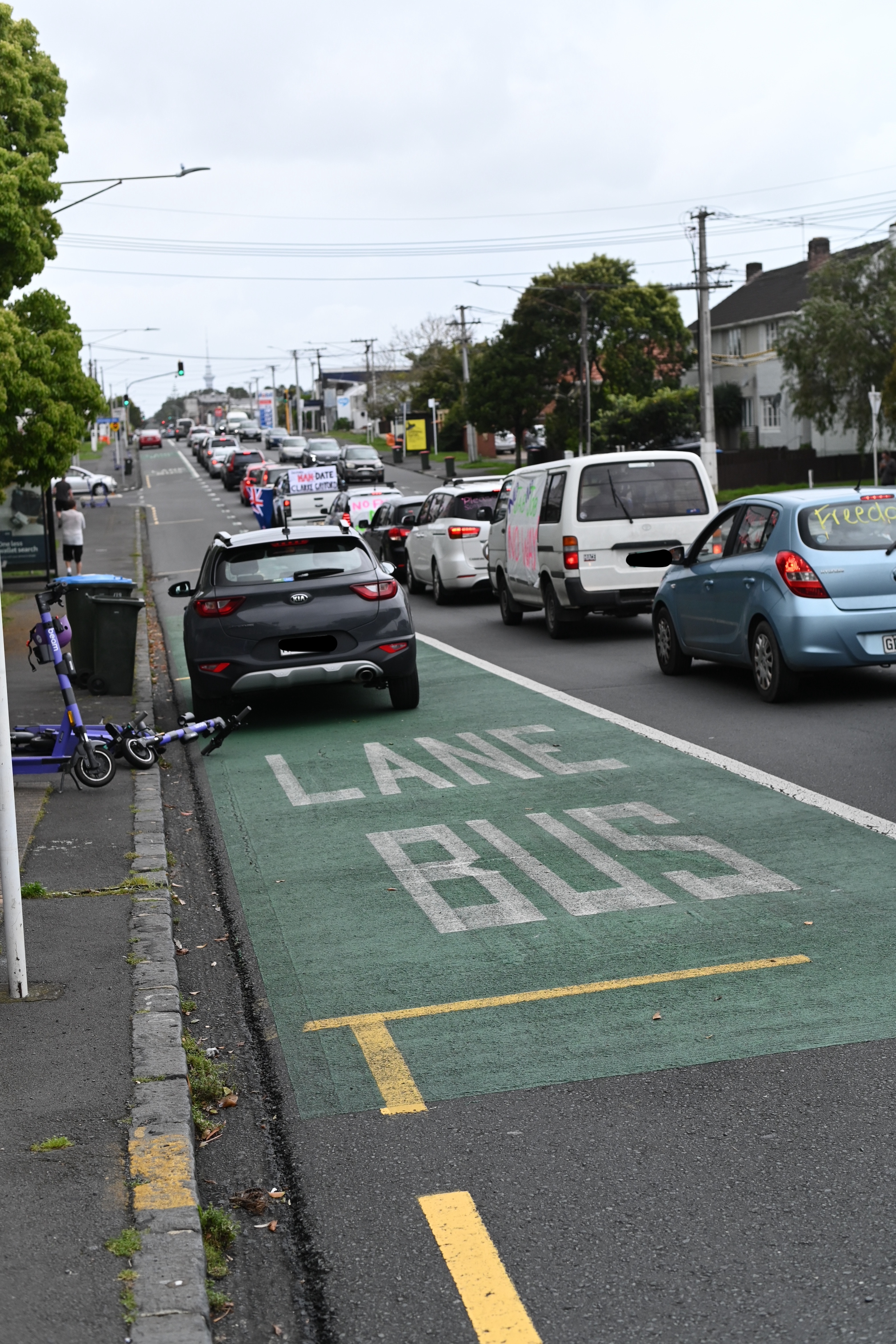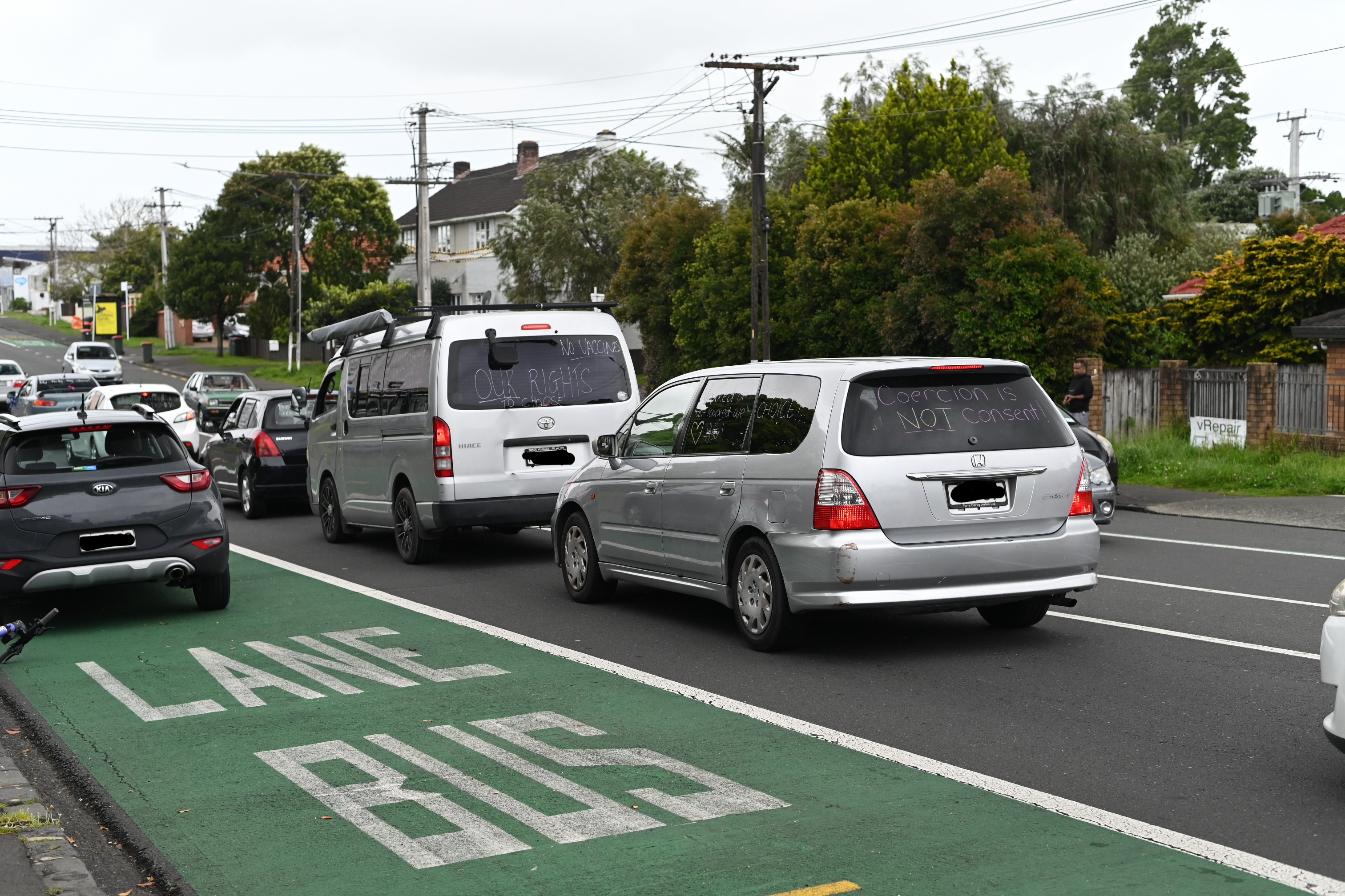 People protesting against recent vaccine mandates slowed traffic on Auckland’s Dominion Rd to a crawl this afternoon.