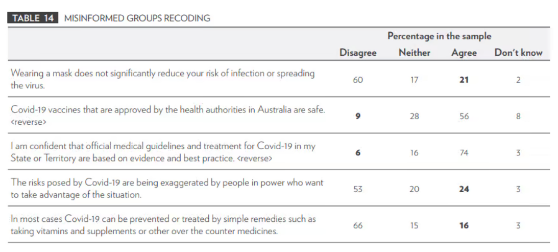 This flawed logic underpins much of the current academic misinformation research, including the University of Canberra study which informed the development of ACMA’s draft legislation. Researchers asked respondents to agree or disagree with a range of statements ranging from the utility of masks in preventing Covid infection and transmission, to whether Covid vaccines are safe. Where respondents disagreed with the official advice, they were categorised as ‘believing misinformation,’ regardless of the contestability of the statements.