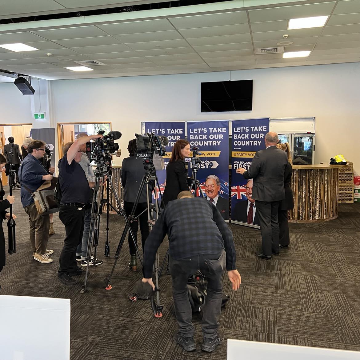 The photo above is of the media setting up their media scrum for Winston Peters to do his media stand up. While they were doing that, Winston Peters was giving me a short interview post his speech.