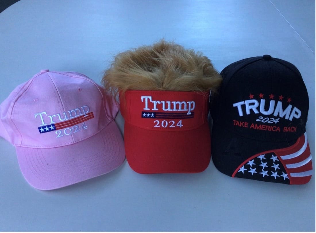 Our sump host always graciously directs parking our cars at his place as we all drive in. He’s always out there even in the rain with our potluck dishes. He has a selection of Trump hats which we love! This time he wore, the one in the middle, his new one – the one his very astute son-in-law bought him. Orange hair and a 2024 prediction. We started laughing as we arrived, and some went home with aching belly muscles from laughing so much.