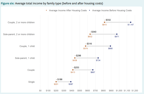 Below are actual average incomes by family type before and after housing costs: