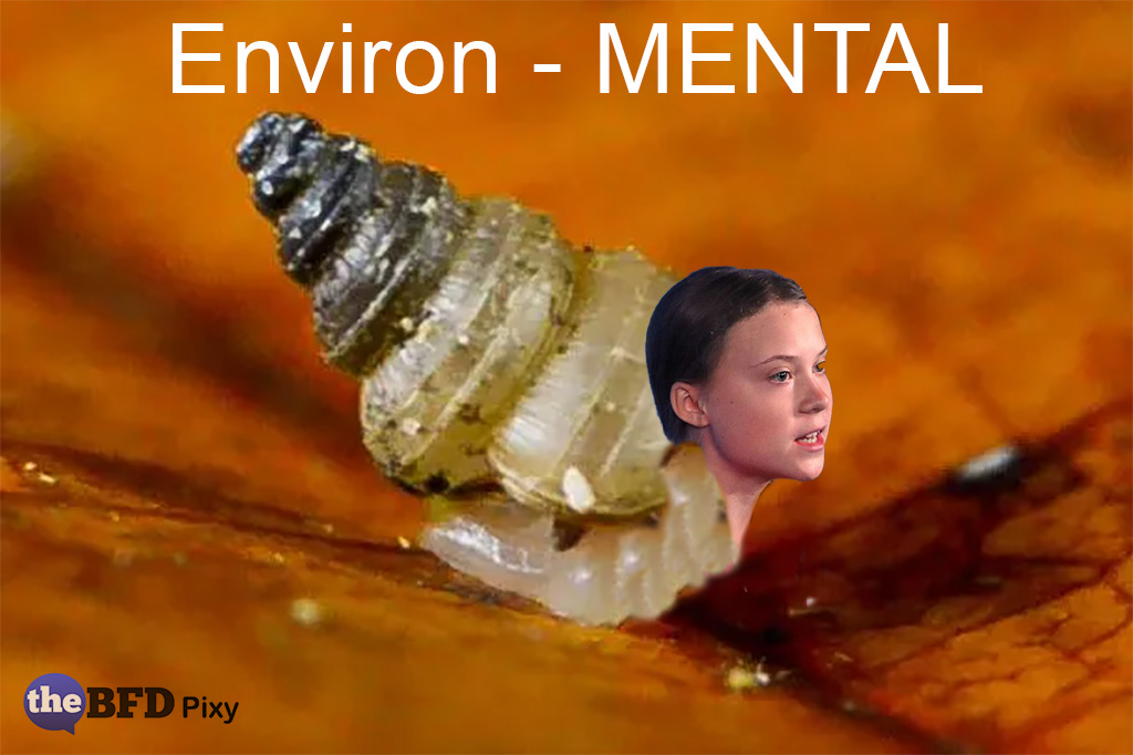 Environmental activism was a great source for satirical images. I couldn’t believe my luck when they published a photo of the snail that had been named after Greta Thunberg as it perfectly lent itself to an image which featured in February.