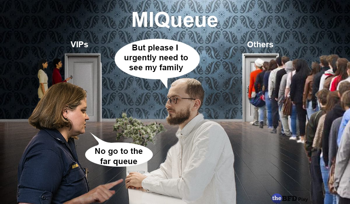 MIQueue. Photoshopped image credit Pixy. The BFD.