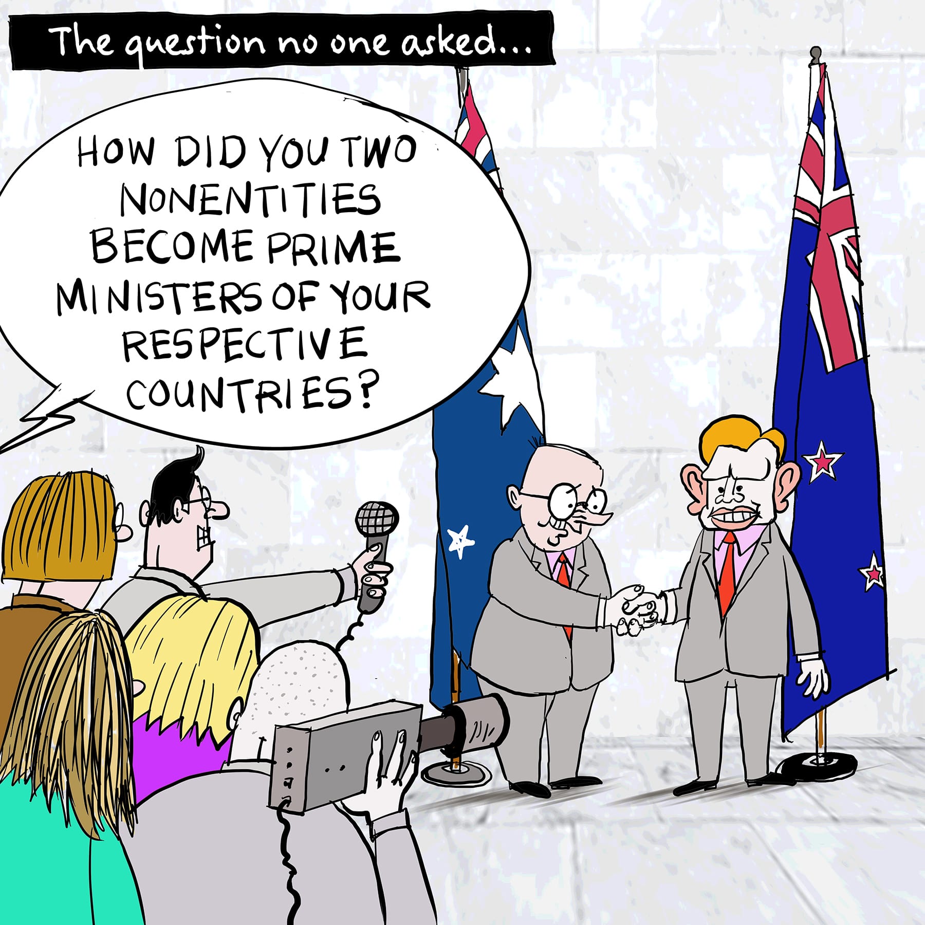 Trans-Tasman meeting of minds. Cartoon credit Sonovamin. The BFD.