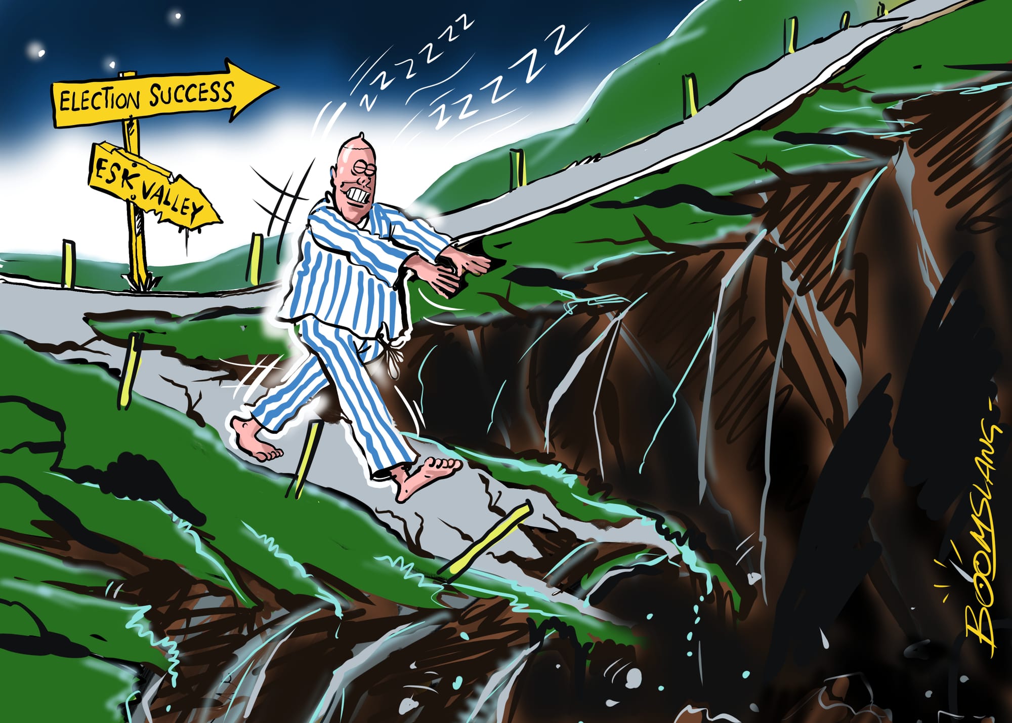 Sleep Walking. Cartoon credit: BoomSlang. The BFD.