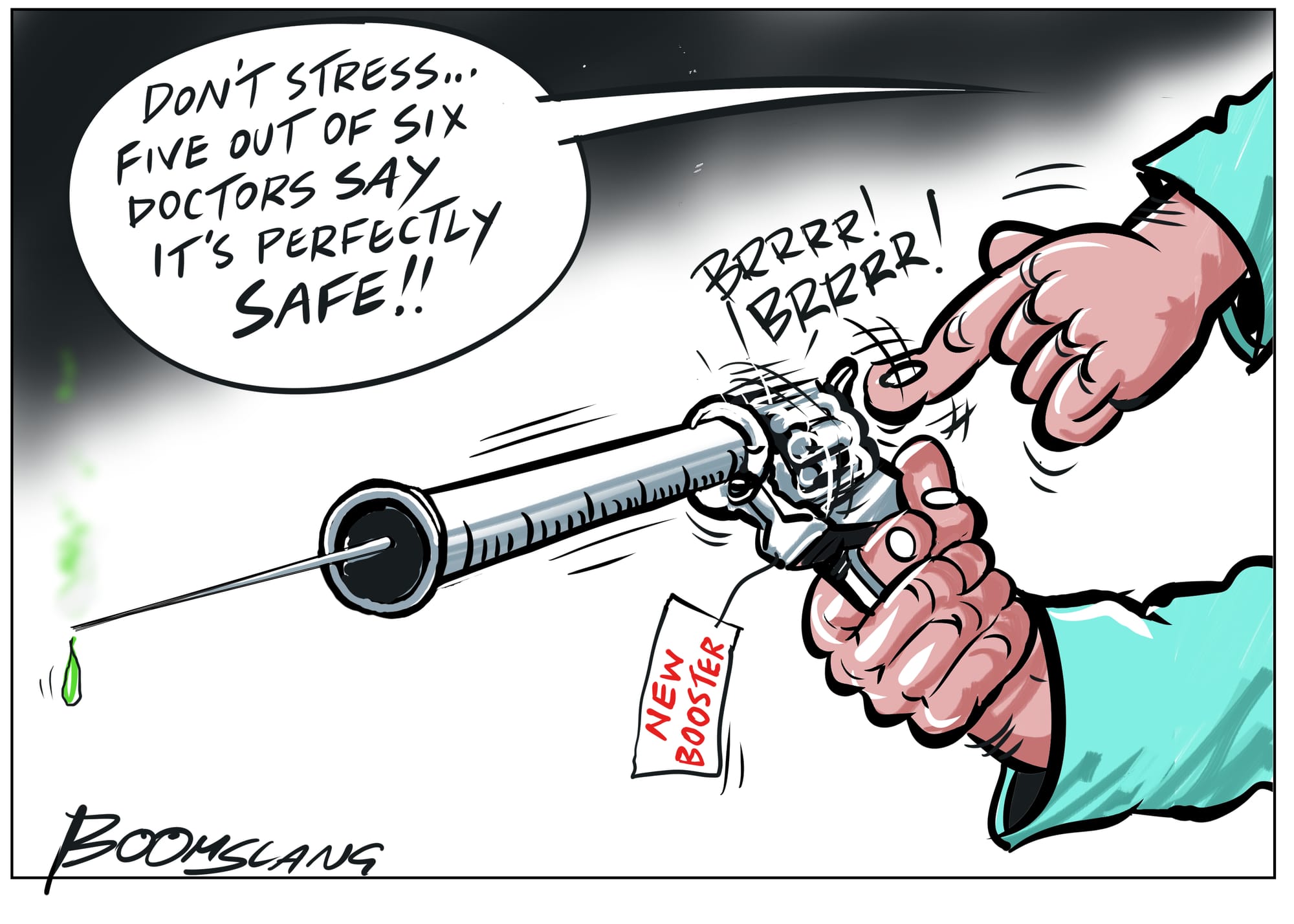 Booster shots. Cartoon credit BoomSlang. The BFD.