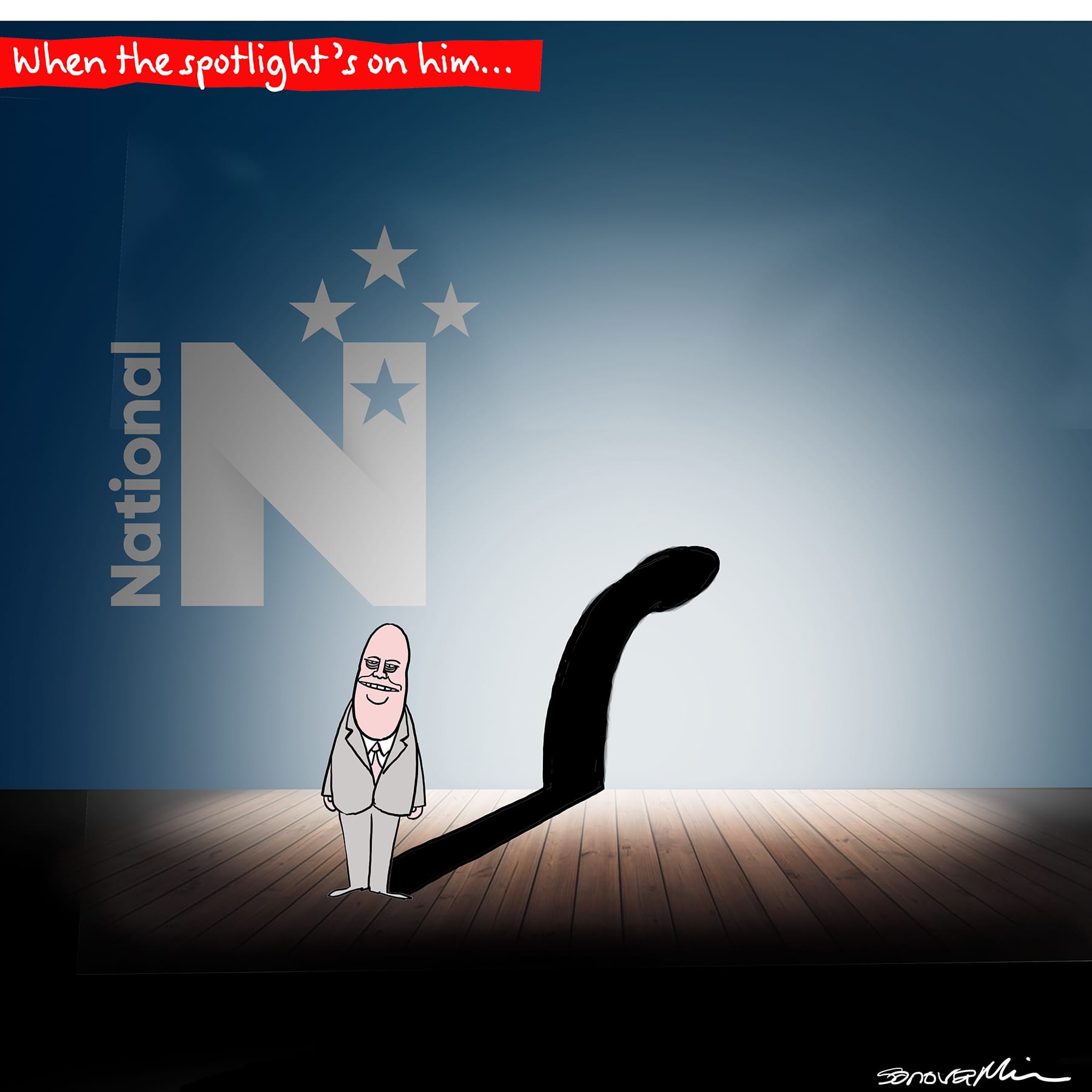 The shadow he casts. Cartoon credit SonovaMin. The BFD.