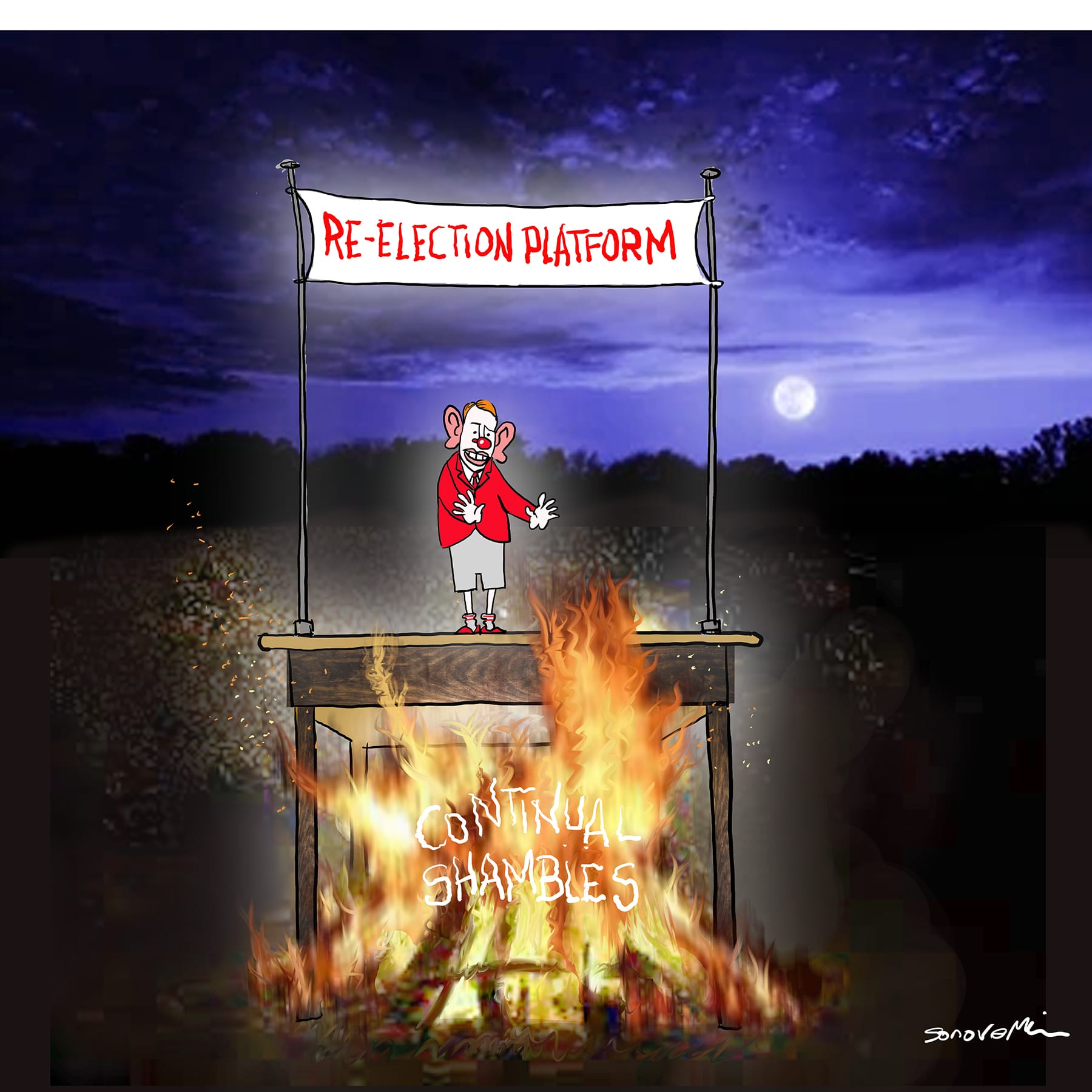 Policy bonfires. Cartoon credit: SonovaMin. The BFD.