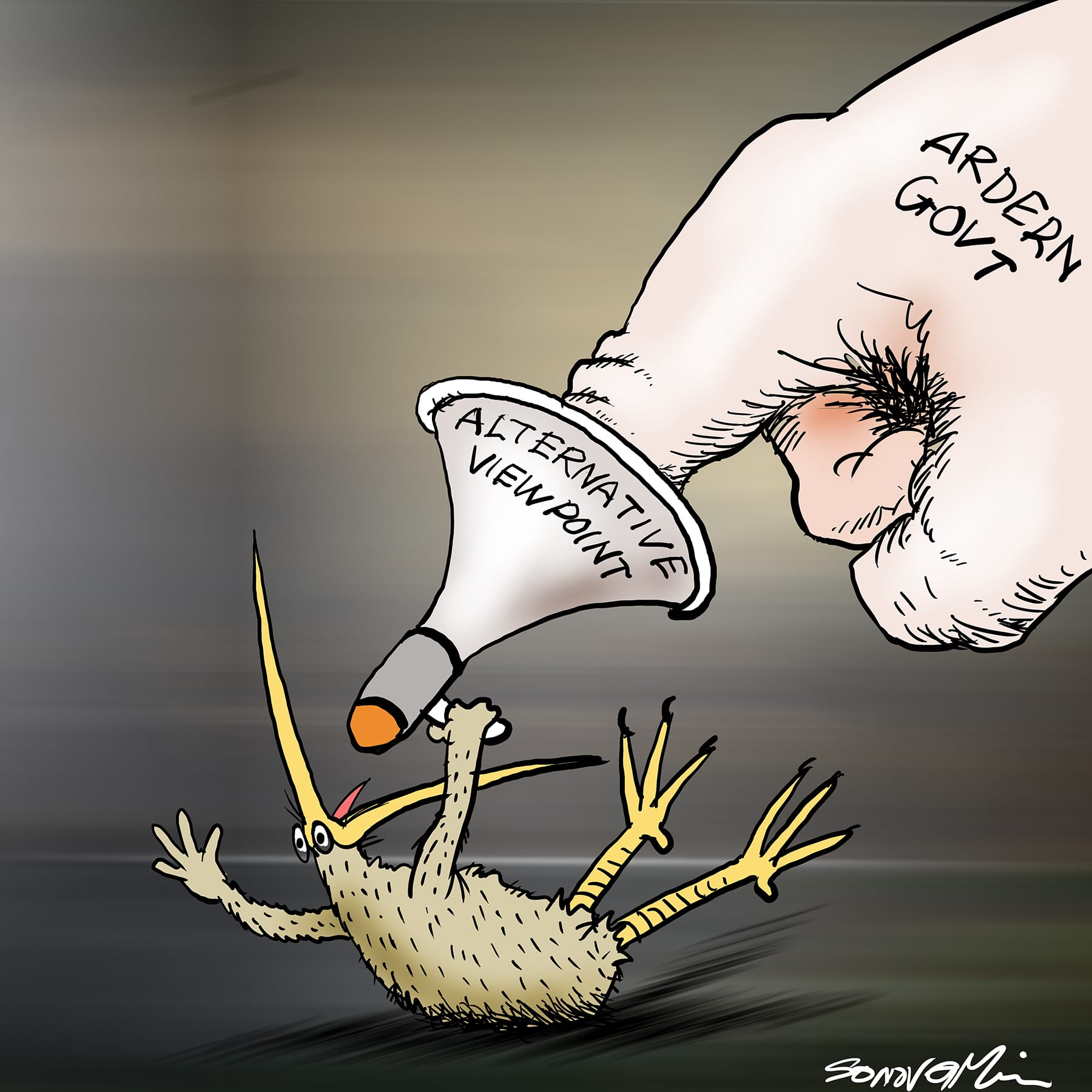 Stifled Dissent. The BFD, Cartoon credit: SonovaMin