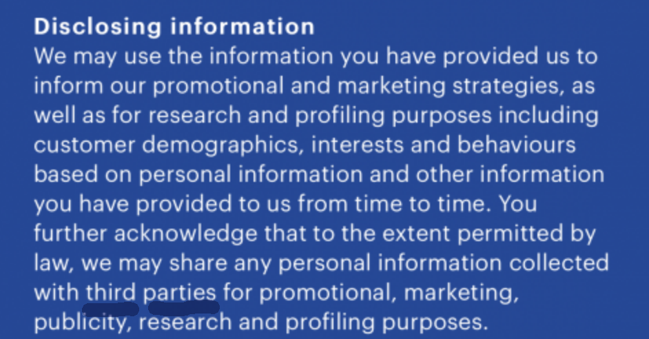 But who are they? Who exactly have we given permission to in these terms? Who are the overseas third parties mentioned? I understand the need to protect against shoplifters but there is nothing in here saying our info is only going to the New Zealand police. In fact, it’s pretty obscure as to who’s getting to track us.