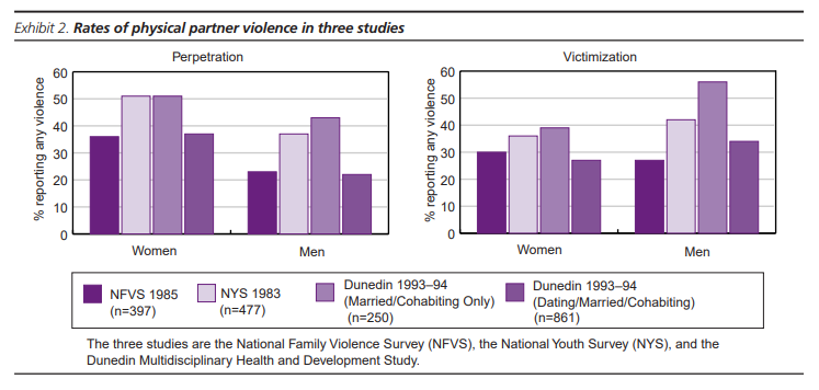 As well as evidence from the Dunedin project, Professor David Fergusson directed the Christchurch Health and Development Study which tracked 1,265 children born in 1977 and in 2005 and found that men and women reported similar experiences of victimisation and perpetration of domestic violence. According to the Otago Daily Times: