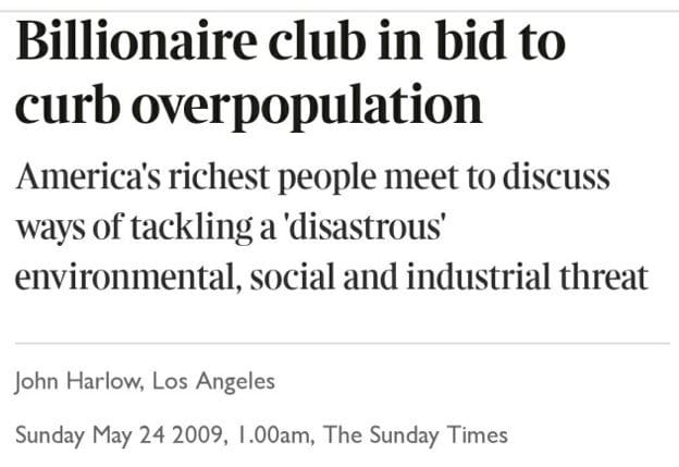 Five years later, an alliance of monumentally wealthy and powerful individuals convened at the Manhattan home of Sir Paul Nurse, a British Nobel Prize winning biochemist and President of Rockefeller University. The group included a range of individuals connected to the biosecurity agenda such as Bill Gates, David Rockefeller Jr, CNN founder Ted Turner, New York Mayor Michael Bloomberg and political puppeteer and philanthropist George Soros. Leaked details of the secret meeting which discussed a need to curb population growth were published by the Sunday Times.