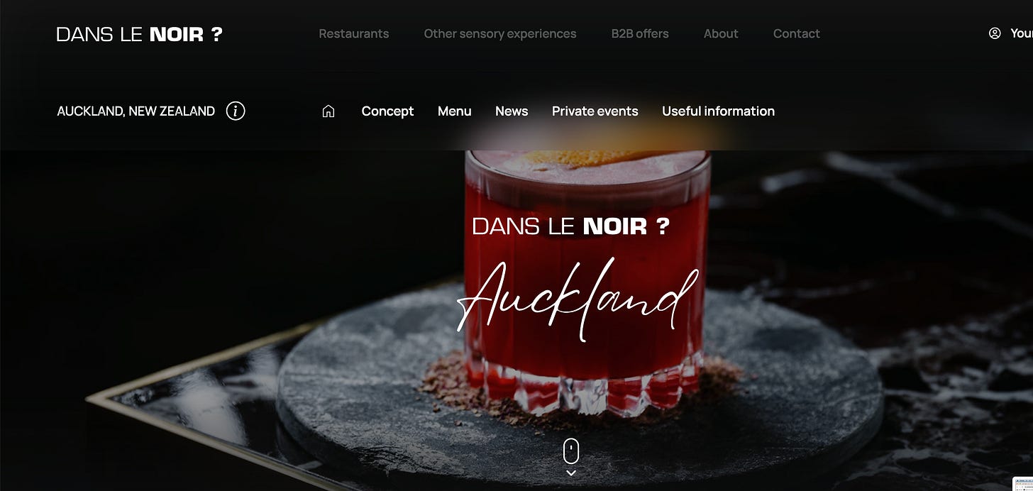 What was it? I ate a three-course restaurant meal in total darkness and was served by blind waiters. The restaurant “Dans Le Noir” was in a special room set aside for the concept in a large Auckland hotel. “Dans Le Noir” is a franchise that originated in Paris in 2004 and has since expanded all around the world. The theory is that by switching off one of the senses, the others would come to the fore.