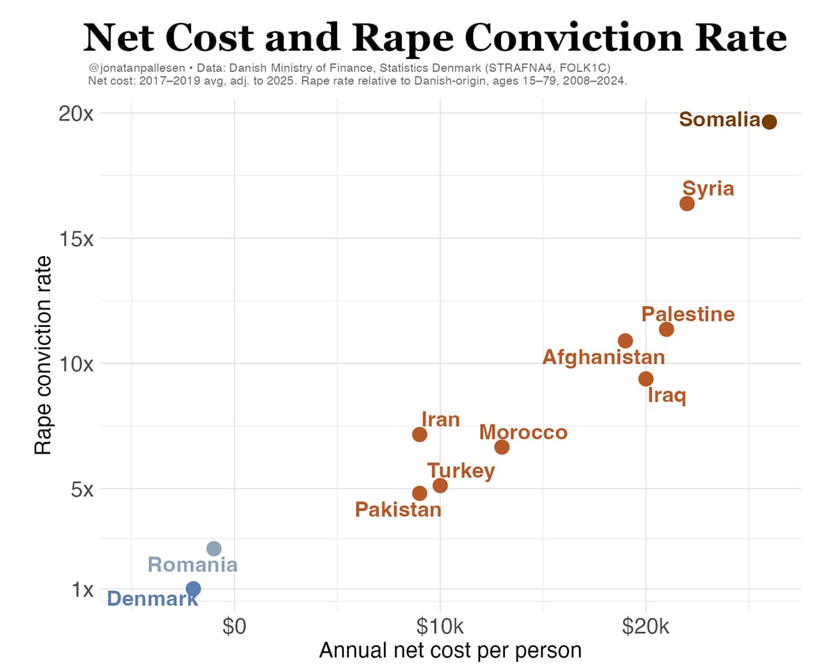 So, thanks to the tilty-head left, Denmark has burdened itself with ‘migrants’ who refuse to work, are rampant criminals and breed like rabbits.