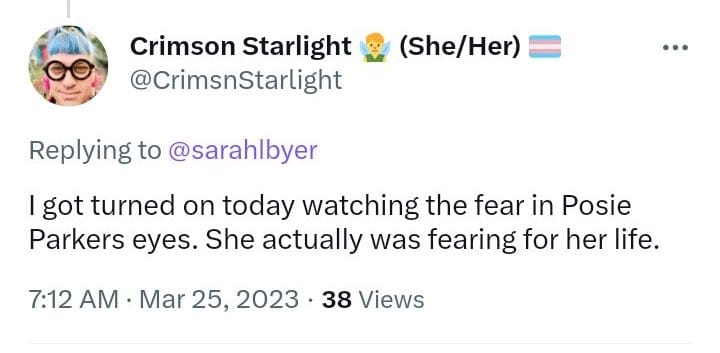Obviously, this is the extreme edge of a disparate rainbow community, but won’t someone at least acknowledge the threat to women and youngsters using public toilets?
